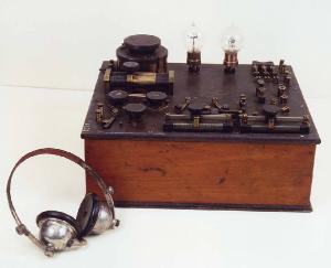 E' un ricevitore per Telegrafia Senza Fili (TSF) o radiotelefonia basato sulla rivelazione a cristallo di Carborundum e con amplificazione del segnale con valvole (triodi). L'oggetto è composto da una scatola in legno con parte superiore in ebanite. Sul lato superiore della scatola si trovano: due cristalli con sedi intercambiabili, un condensatore a scorrimento e uno a rotazione, due reostati, diversi serrafili e interuttori in ottone e le due valvole alloggiate nelle loro sedi con attacco alla francese.