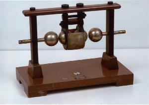 Una base in legno reca due montanti in ebanite collegati da una traversa superiore in legno. Nei montanti sono inseriti due elettrodi con terminanti con due sfere d'ottone. Nello spazio compreso tra queste due sfere sono inserite altre due sfere dello stesso diametro e materiale, racchiuse in una struttura in ebanite imperniata nella tarversa superiore in legno del telaio. Un foglio ricurvo di pergamena è fissato alla struttura in ebanite grazie ad apposite funicelle, in modo da avvogere parzialmente la coppia di sfere centrali. In questo modo le sfere si trovavano in un recipiente impermeabile in cui veniva versato dell'olio di vaselina.