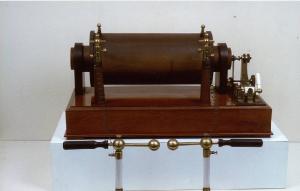 E' un modello di rocchetto di induzione. La tipologia è quella inventata a metà dell'Ottocento dall'elettromeccanico tedesco, costruttore di srumenti scientifici, Heinrich Ruhmkorff. Il rocchetto, formato da due avvolgimenti coassiali in rame (un primario di poche spire e un secondario di migliaia di spire) avvolti intorno a un nucleo di ferro dolce e racchiusi in un involucro di ebanite, è montato su di una base in legno con sostegni in ebanite. Sulla base in legno è presente anche lo spinterogeno a due sfere in ottone su sostegni in ebanite, l'interruttore elettromeccanico con lamina vibrante e l'interuttore/inversore per alimentare il dispositivo e per variare il senso della corrente nell'avvolgimento primario.