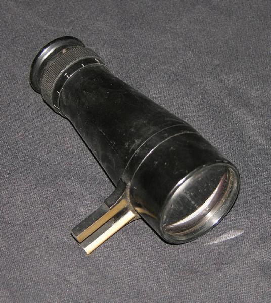 Nel caso di questo oggetto non si può parlare di strumento vero e proprio essendo, in realtà, un accessorio complementare ad uno strumento ben più complesso, nello specifico un sestante da marina. E' di fatto un piccolo cannocchiale, del quale si sono conservate le parti ottiche, il cui tubo è di forma tronco-conica. E' dotato di una staffa metallica posizionata verticalmente al di sotto della lente obiettiva. Tale supporto permetteva di inserire il monocolo nella sua sede ricavata nel sestante principale assicurando il corretto allineamento. L'oculare è dotato di regolazione per le diottrie in modo da adattarsi al meglio all'occhio dell'utilizzatore.