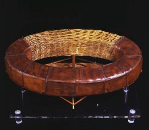 Il modello rappresenta un galleggiante formato da un'intelaiatura in vimini intrecciato a forma ellittica. L'intelaiatura è parzialmente ricoperta da una guaina in cuoio