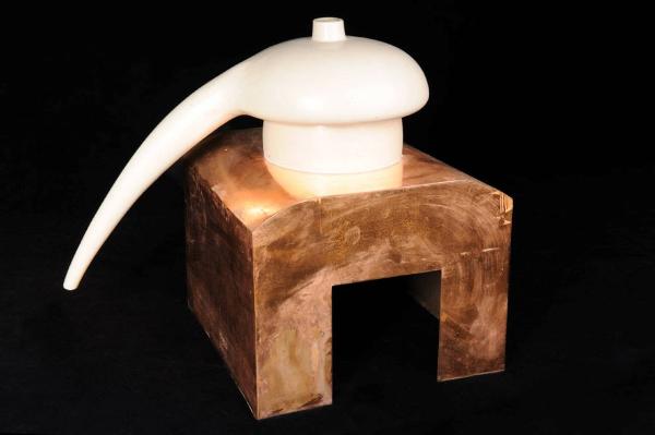 Il modello è composto da un alambicco a becco ricurvo in ceramica bianca , posto su una struttura di rame. Sopra la struttura è collocata una vasca di plexiglass.