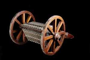 Questo modello rappresenta una batteria di cannoni costituita da 33 piccole bocche da fuoco ordinate in tre file da 11 ciascuna su unico telaio rotante. Le bocche da fuoco ad avancarica sono fissate al telaio con una cerniera che ne permette la rotazione verso l'alto per il caricamento. Una vite senza fine è inserita nell'affusto .