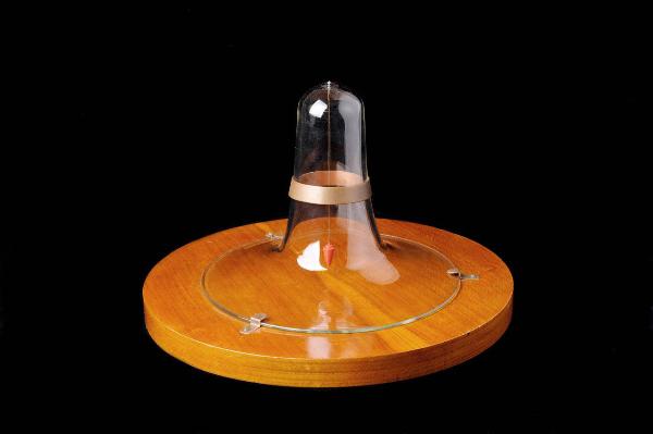 Il modello rappresenta uno strumento di misurazione, costituito da una base lignea sormontata da una campana di vetro,all'interno della quale è appeso un piccolo pendolo.