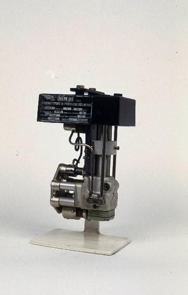 Lo strumento ha una funzione prettamente didattico dimostrativa essendo privo di gran parte della struttura esterna di protezione. Nella parte superiore presenta, in posizioni opposte, i fori per il collegamento all'impianto pneumatico da regolare. La parte fondamentale dello strumento è costituita da due tubi per la trasmissione della pressione e da un sistema a molle e soffietti per la regolazione della pressione relativa. Nella parte posteriore è presente il sistema di regolazione del punto zero, mentre su uno dei lati un'etichetta metallica riporta dati fondamentali come nome del costruttore, nome dello strumento e caratteristiche tecniche. Lo struemento è avvitatao su un supporto metallico utilizzato a fini espositivi.