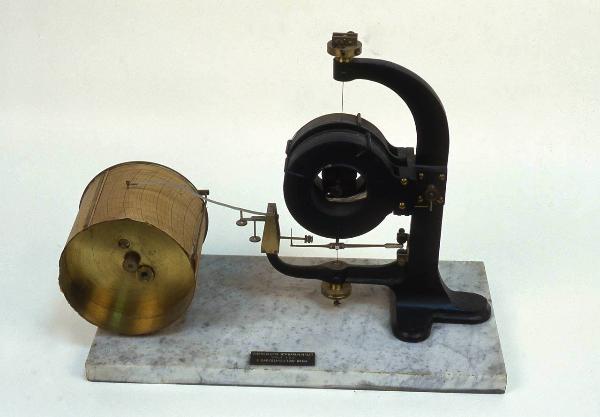 Lo strumento è posizionato su una base rettangolare in marmo. E' costituito da una staffa metallica verticale che nella parte superiore si inclina verso il centro della base. Dall'estremità scendono due fili ai quali, a metà della loro lunghezza, è fissato l'equipaggio mobile. Questo è costituito da due anelli ferromagnetici posizionati all'interno di due bobine, di forma circolare, più grandi. I due fili che reggono l'equipaggio sono fissati inferiormente su un braccetto metallico che fuoriesce dalla staffa verticale e sul quale è inserita una vite micrometrica per la regolazione dei fili stessi. Il movimento dell'equipaggio veniva indicato da una piccola lancetta metallica posizionata al di sotto delle due bobine principali. Il movimento di questa lancetta veniva trasmesso, per mezzo di un sistema di leve, ad una piccola asta dotata di punta inchiostrata. Questa registrava il valore misurato su un foglio di carta millimetrata che era posizionato sulla superficie esterna di un cilindro messo in rotazione da un meccanismo a molla. Le due bobine sono fissate alla staffa verticale per mezzo di un sistema a ganasce sulle quali erano posizionati i morsetti per il collegamento al circuito elettrico o all'impianto da misurare.