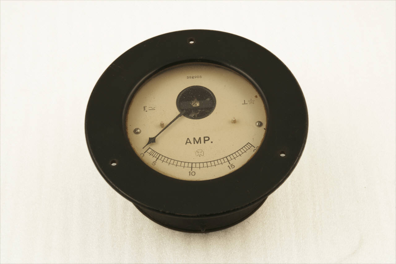 Questo strumento ha forma tipicamente circolare ed il quadrante, che occupa gran parte della superficie superiore, è ricoperto e protetto da un vetro. La scala, che è disposta secondo un arco di circonferenza nella parte inferiore del quadrante, permetteva di misurare quantità comprese tra 3 e 20 Ampere ed è suddivisa con tacche ogni 0,5 unità ed indicazione numerica ogni 5. La lancetta indicatrice è imperniata nella parte superiore del quadrante. La struttura metallica, di forma cilindrica, dello strumento si allarga intorno al quadrante a formare una flangia che ne facilitava l'inserimento su un quadro di controllo generale. Sul retro dello strumento sono presenti i serrafili per i collegamenti elettrici al circuito da misurare.