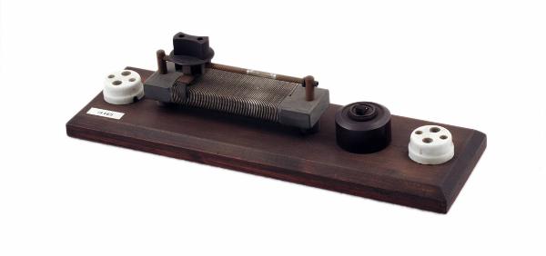 Questo reostato è formato da un telaio in ferro sul quale è avvolta, su una barra in metallo a sezione rettangolare, una bobina quadrangolare. Sopra la bobina vi è un'asta sulla quale scorre un cursore con manico in ebanite e contatti in metallo. Il reostato è poi fissato su una tavoletta di legno rettangolare sulla quale sono presenti due prese elettriche in ceramica e un interruttore in ebanite. Le prese sono collegate a due serrafili posti agli estremi dello strumento. Una delle prese è collegata all'interruttore. Sul cursore sono indicate l'intensità di corrente massima ammissibile nelle normali condizioni d'uso ( 25 Ampere) e l'intensità massima del reostato (220 Ohm).