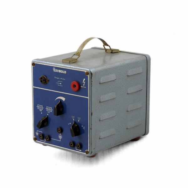 La custodia metallica dello strumento ha forma parallelepipeda e poggia su piedini in gomma. Superiormente è presente una maniglia in metallo per il trasporto.\nIl pannello frontale è interamente occupato dai dispositivi di regolazione e dalle boccole per i collegamenti. Nella parte superiore sono situati un supporto tripolare per l'inserzione di tubi contatori (Geiger Müller) e una boccola dalla quale è possibile immettere la necessaria alta tensione. Nella parte inferiore sono presenti le boccole per i collegamenti in ingresso e in uscita e una presa per la messa a terra, due commutatori che permettono di scegliere l'uscita desiderata a seconda dell'uso dello strumento e un regolatore di sensibilità. Il commutatore di sinistra permette di scegliere tra tensione continua ed alternata a due o tre stadi, quello di destra presenta quattro posizioni possibili: nella prima posizione l'intera corrente anodica della valvola finale scorre attraverso l'utilizzatore (uso come strumento di misura), nella seconda la resistenza d'adattamento è di 5 kOhm (per utilizzatori ad alta resistenza), nella terza la resistenza di adattamento è ancora di 5 kOhm con accoppiamento capacitivo (per utilizzatori ad alta resistenza con segnali a corrente alternata), nell'ultima l'adattamento avviene attraverso trasformatore per utilizzatori con circa 4 Ohm di resistenza interna (con segnali a corrente alternata). Da una boccola in uscita possono essere prelevati circa 100 V di tensione continua per esperimenti con fotocellule.\nSulla faccia posteriore è presente la presa per il collegamento alla cassetta di alimentazione o ad una idonea sorgente di tensione. Manca il relativo cavo multiplo con 6 singole spine. Lateralmente sono presenti delle prese d'aria.\nE' inoltre presente un'etichetta riportante il nome dell'azienda costruttrice e dati tecnici dello strumento.