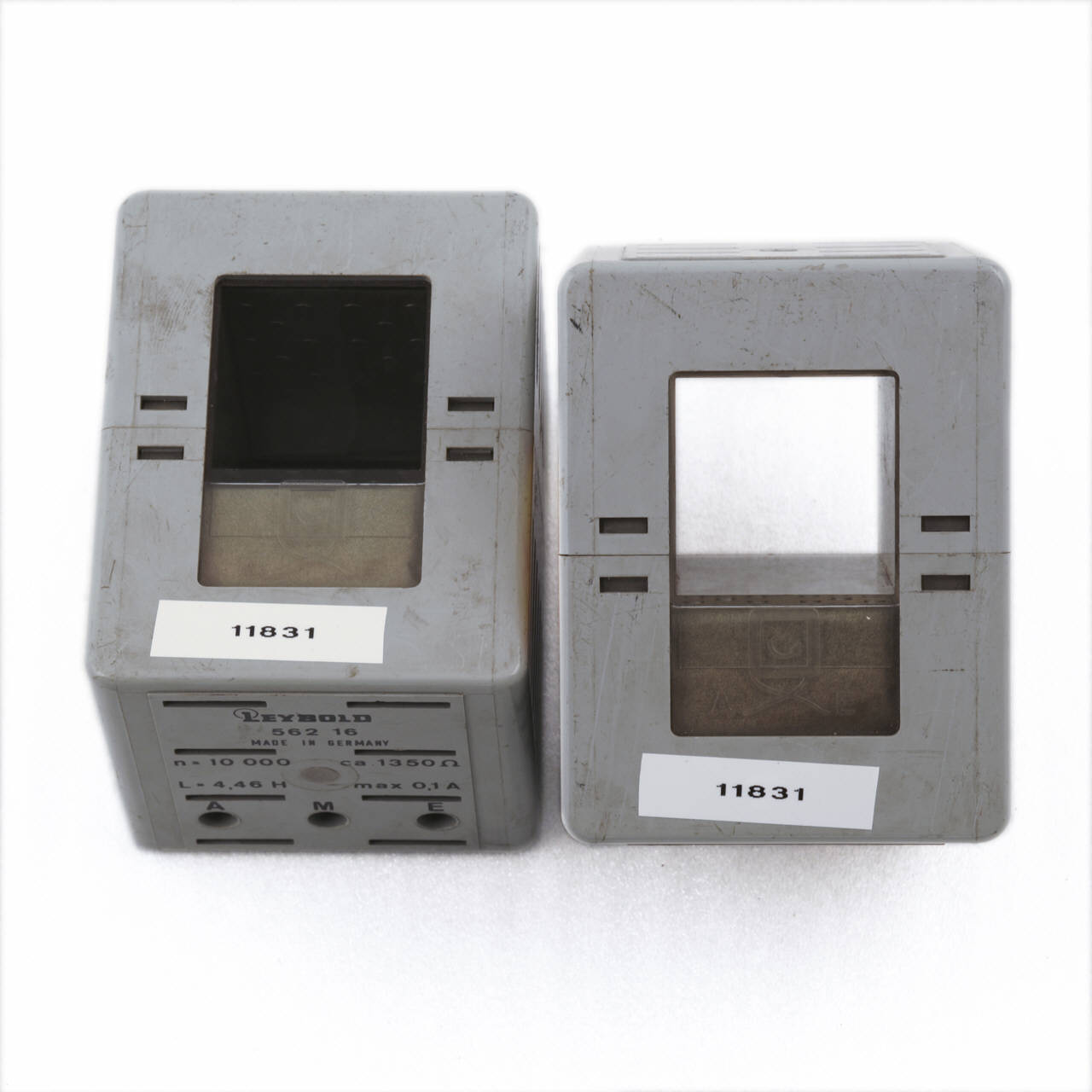 Queste bobine sono costituite da 10000 spire. Gli avvolgimenti sono realizzati con fili di rame di spessore 0,2mm.\nLa custodia delle bobine è in materiale sintetico, trasparente nella parte posteriore per riconoscere le spire dell'avvolgimento, ed è chiusa da tutte le parti con fessure laterali per il raffreddamento ed apertura quadrata per inserirvi il nucleo ad U.\nInizio, centro e fine degli avvolgimenti sono collegati a tre boccole di sicurezza inserite sulla parete frontale della custodia.\nVicino alle boccole sono impressi il nome della ditta costruttrice, il modello, il numero di spire, la resistenza in corrente continua, l'induttanza e la corrente massima ammessa in modo permanente.