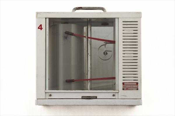 Questo dispositivo è racchiuso in una custodia di forma parallelepipeda in ferro e vetro, con maniglia per il trasporto.\nSotto la maniglia è inserita una vite, svitando la quale è possibile aprire la custodia ed accedere al dispositivo interno per la manutenzione.\nAll'interno sono visibili il meccanismo di misura vero e proprio collegato ad un sistema di leve orizzontali che terminano con un pennino inchiostrato che può essere posizionato su un tamburo girevole, in metallo (normalmente ricoperto da carta diagrammata, per la registrazione delle misure).\nL'astina con pennino superiore è collegata ad un termometro con elemento sensibile a bimetallo per le misure di temperatura. Quella inferiore è collegata ad un igrometro a capello per le misure di umidità relativa.\nLa parte metallica della custodia è molto fessurata in corrispondenza dei dispositivi di misura veri e propri per permetterne il funzionamento.\nDall'esterno, attraverso una rotella parzialmente sporgente dalla custodia, solidale ad un'astina verticale posta in prossimità delle astine, è possibile avvicinare o allontanare i pennini dal tamburo.\nIl tamburo può ruotare sul suo asse grazie ad un dispositivo con carica a molla.