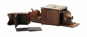 Questo apparecchio è racchiuso in una custodia in legno, ricoperta in cuoio all'esterno e in velluto all'interno. Con maniglia in cuoio per il trasporto.\nLa custodia funge anche da struttura portante durante l'uso.\nAprendo lo sportello anteriore, incernierato nella parte inferiore, si accede al vano contenente l'ottica con relativo otturatore.\nIn una scatoletta in legno è contenuto l'otturatore a tendina avvolgibile (con velocità da 1/15 a 1/90 di secondo) e, davanti ad esso, è posizionato l'obiettivo. All'interno dell'obiettivo è inserito un diaframma a iride.\nQuesto porta obiettivo è a decentramento verticale e può essere sfilato dalla sua sede (e sostituito con uno analogo per riprese stereoscopiche).\nSull'interno del coperchio è inserita una guida in legno lungo la quale può scorrere l'obiettivo. Questo permette la messa a fuoco.\nLa lettura della distanza di ripresa può avvenire rispetto ad una scala graduata fissata sull'interno del coperchio, che riporta le distanze da 5 a 30ft.\nL'otturatore permette foto istantanee: i tempi dell'otturatore si regolano con una ruota posta sopra il porta obiettivo (da 1/15 a 1/90 di secondo) ed il comando di apertura è a cordicella, inserito sul lato sinistro.\nIl diaframma è regolabile grazie ad una ghiera concentrica all'obiettivo stesso (da f/8 a f/64).\nSulla guida all'interno del coperchio è anche inserito un mirino a riflessioneorientabile, per l'inquadratura e la messa fuoco.\nPorta obiettivo e custodia sono uniti da un soffietto in pelle a sezione quadrata.\nAprendo lo sportello posteriore (chiudibile con una serratura a chiave), costituito da più parti scomponibili, si accede al retro dell'apparecchio dove si trova un vetro smerigliato utilizzato per l'inquadratura e la messa a fuoco e al posto del quale si inserisce poi il porta lastre (formato 11x16cm).\nLa cornice con il vetro smerigliato è basculante.\nLo sportello posteriore aperto funge da custodia per il magazzino porta lastre.\nLa cassetta porta lastre è costituita da una scatoletta in legno con sportello scorrevole per l'apertura e tasca laterale in pelle per l'immagazzinaggio delle lastre (fino a 12). All'interno si trovano 12 porta lastre singoli in metallo.