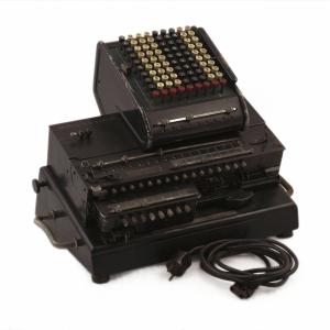 Macchina elettromeccanica installata su un basamento inclinato, dotato di impugnature laterali. La macchina presenta una tastiera estesa composta da nove colonne di tasti numerati da 1a 9, alle quali si aggiunge una riga di tasti rossi per l'azzeramento della colonna; alla destra della tastiera è posta una barra in legno per la totalizzazione delle cifre. La tastiera è posta sul piano superiore di un'armatura che ricopre il complesso dei meccanismi per il funzionamento della tastiera. Le cifre impostate vengono visualizzate in nove finestrelle poste sul lato anteriore dell'armatura, in corrispondenza alle colonne di tasti. Sul piano anteriore alla tastiera sono posizionati il totalizzatore a sedici spazi e il contatore da otto spazi. Nella parte anteriore della calcolatrice un altro indicatore da otto spazi serve per l'impostazione del moltiplicatore. Tutti questi indicatori sono riparati da una striscia di celluloide trasparente. La selezione del tipo di operazione da eseguire viene effettuata attraverso due levette poste sulla parte destra del piano della macchhina. Sul lato anteriore della calcolatrice sono poste due leve per l'azzeramento del totalizzatore e del contatore. Sul fianco destro della calcolatrice si trova il supporto bipolare per l'allacciamento della macchina alla rete di alimentazione; l'interruttore per l'accensione si trova sull'angolo anteriore sinistro. La calcolatrice è dotata del cavo elettrico di alimentazione.