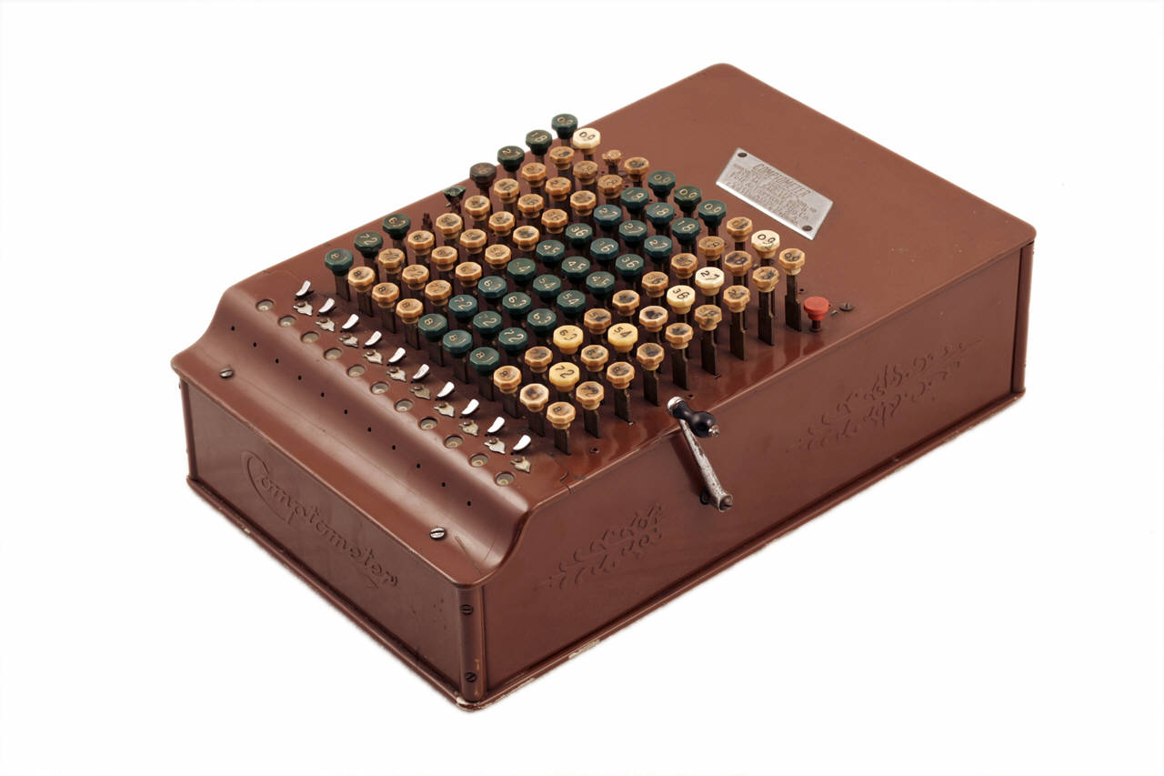 Macchina costituita da una scatola in metallo, verniciata di marrone, sul cui lato superiore si trova la tastiera estesa. La tastiera prevede novanta tasti in celluloide verde e bianca, disposti su dieci colonne numerate da 1 a 9; sul bottone di ogni tasto è riportato, insieme al valore del tasto, anche il suo numero complementare. Il totalizzatore è composto da dieci finestrelle circolari poste alla base di ogni colonna. Sul fianco destro della macchina è posizionata la leva per l'azzeramento del totalizzatore. All'interno della scatola risiede il meccanismo di funzionamento della macchina: i tasti di una colonna agiscono su punti diversi di una medesima leva munita anterioremente di un settore dentato che, in base al diverso abbassamento dovuto alla pressione sul tasto, comporta il movimento della ruota del numeratore alla posizione del numero digitato.