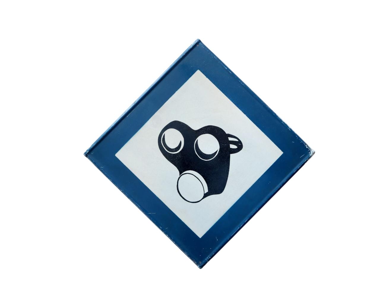 Cartello quadrato con bordo in blu e pittogramma centrale in nero, ottenuti mediante l'utilizzo della serigrafia, su fondo bianco. Presenta quattro fori agli angoli atti al fissaggio.