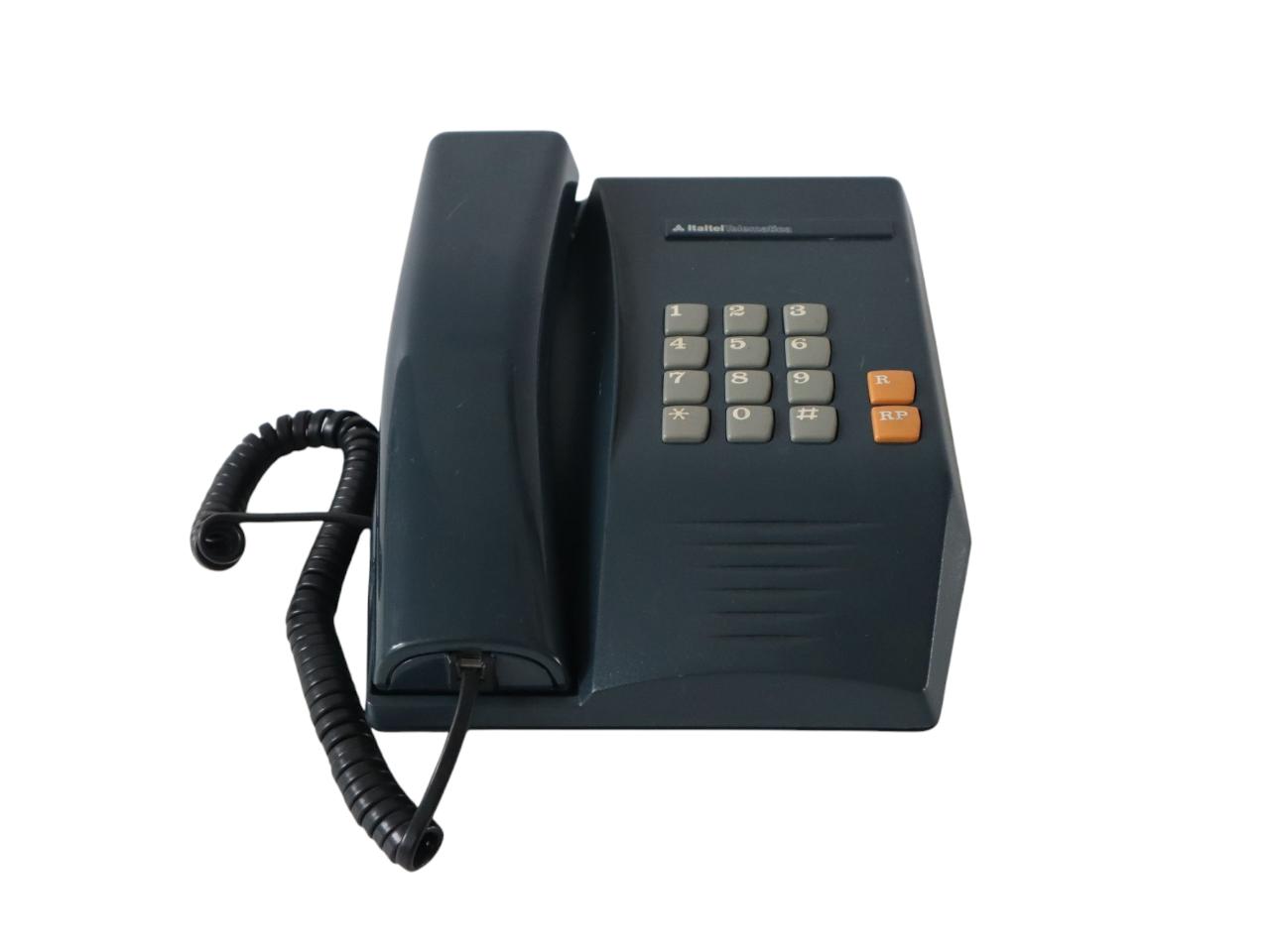 Apparecchio telefonico elettronico fisso, con tastiera e tasti aggiuntivi R e RP per il trasferimento della comunicazione e la ripetizione dell'ultimo numero selezionato.