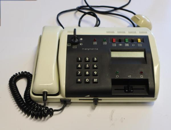 Apparecchio telefonico multifunzione con tastiera numerica e display. Dotato di chiave per la regolazione di alcune funzioni.
