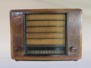 Apparecchio radio ad andamento orizzontale con mobile in legno massello in diverse tonalità del marrone. La parete frontale è occupata in larga parte dall'altoparlante dinamico, protetto da una tela e quattro astine in legno e leggermente rientrato rispetto alla superficie. Nella parte inferiore è inserita la scala parlante inclinata per facilitare la lettura, su cui sono indicate le lunghezze d'onda e le località. Ai lati della scala, sulla cornice della radio, si trovano due manopole per l'accensione/ spegnimento e regolazione del volume e per la sintonizzazione. Sulla parete destra è presente un selettore per la gamma d'onda.\nSul retro è visibile il circuito supereterodina a 5 valvole in modulazione di ampiezza (AM) e l'altoparlante. Sono inoltre presenti i connettori per l'alimentazione in corrente alternata, la presa fono, quella per un altoparlante esterno e una per il collegamento di antenna e terra.
