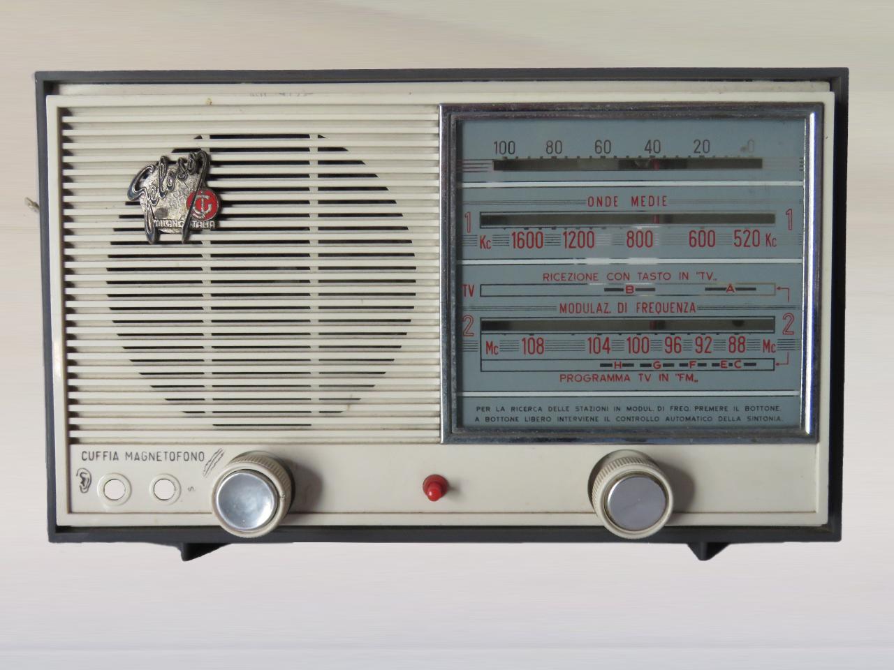 Apparecchio radio compatto da tavolo con mobile squadrato in materiale plastico bianco e grigio. La parete frontale è divisa verticalmente in due parti. A sinistra, dietro ad una griglia protettiva formata da astine orizzontali nello stesso materiale del mobile, è inserito un altoparlante elettrodinamico circolare.\nNella parte destra è presente la scala di sintonia su plastica a indice scorrevole con indicazione delle frequenze per onde medie, canali per la TV (in selezione automatica o manuale in FM) e frequenze per FM.\nLungo tutta la parte bassa della parete frontale, da sinistra a destra si trovano, due prese per cuffia e magnetofono, una manopola per accensione/spegnimento/regolazione volume e un'altra manopola per la sintonizzazione. Sul lato destro si ha un selettore per il cambio di gamma d'onda (OM/FM).\nAll'interno si ha l'altoparlante e un circuito supereterodina a 4 valvole. Sulla parete posteriore, forata per l'aerazione, sono presenti due prese per antenna e terra, il tasto TV per ricerca stazioni FM/ controllo automatico sintonia, un cambiatensione. Dal retro fuoriesce il cavo di alimentazione.