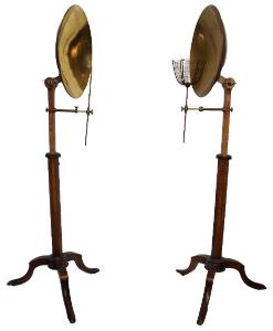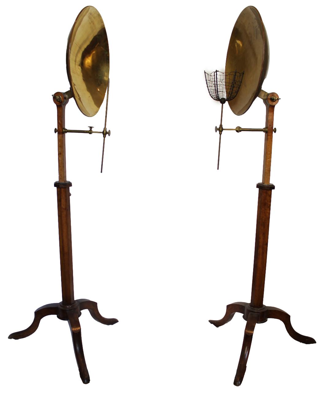 L'apparato si compone di due specchi concavi di ottone montati ciascuno su un sostegno a tre piedi in noce regolabile in altezza. Gli specchi, levigati e laccati nella parte riflettente, sono orientabili e hanno la forma geometrica di un paraboloide di rivoluzione con il fuoco posizionato lungo il proprio asse di simmetria. \nUn braccio d’ottone è fissato orizzontalmente sull'asse mobile del sostegno di legno di entrambe le strutture ed è regolabile in lunghezza. A questi bracci sono collegati, mediante un supporto che consente loro di spostarsi verticalmente, rispettivamente un cestello porta carboni ardenti in rete metallica, che funge da sorgente di calore e una forcella metallica su cui veniva posizionato un panno imbevuto di sostanza facilmente infiammabile. Sia il cestello coi carboni ardenti che il panno infiammabile venivano posizionati, grazie ai vari snodi, nei fuochi delle rispettive parabole.