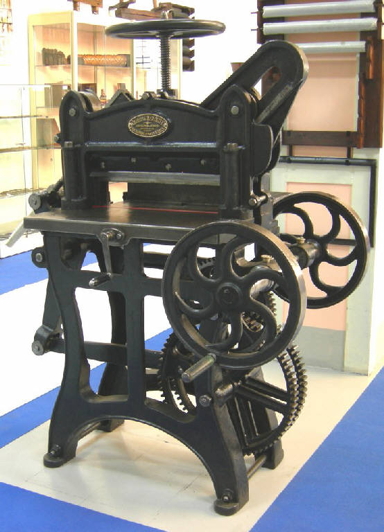 Fra le prime taglierine costruite in Francia a partire dal 1840. Pezzo raro. Luce di taglio mm. 500\nComando manuale a volano