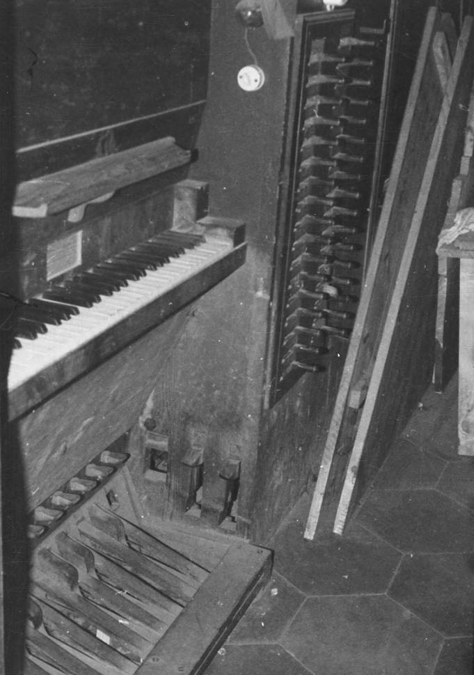 organo in cassa lignea non scolpita con ornamenti lignei sul fastigio