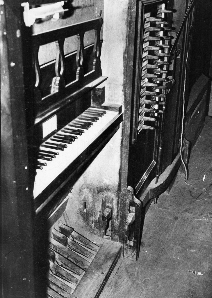 organo in cassa lignea addossata alla parete con lesene scolpite