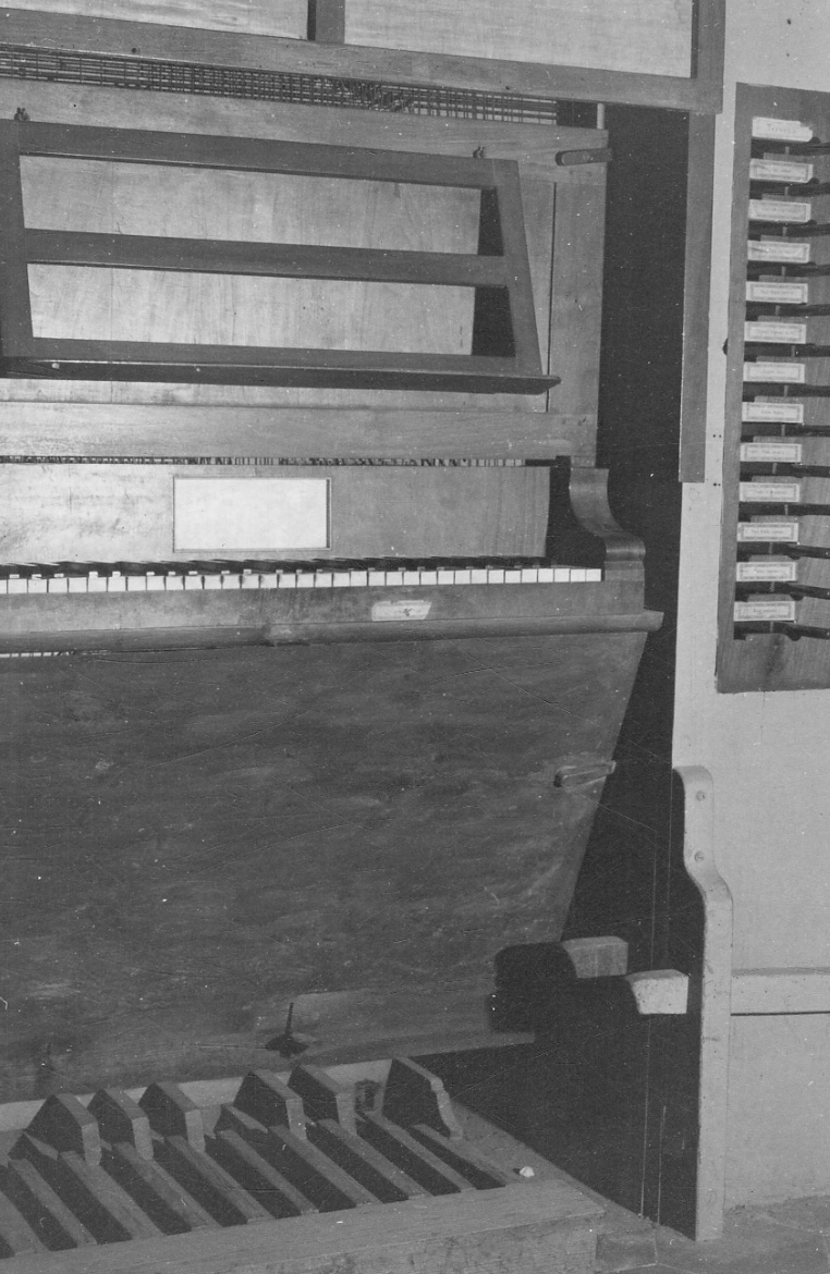L'organo è racchiuso in una cassa a struttura regolare, ornata con angeli. La cassa è in tribuna, tripartita, e la campata centrale è chiusa da cancelli di ferro