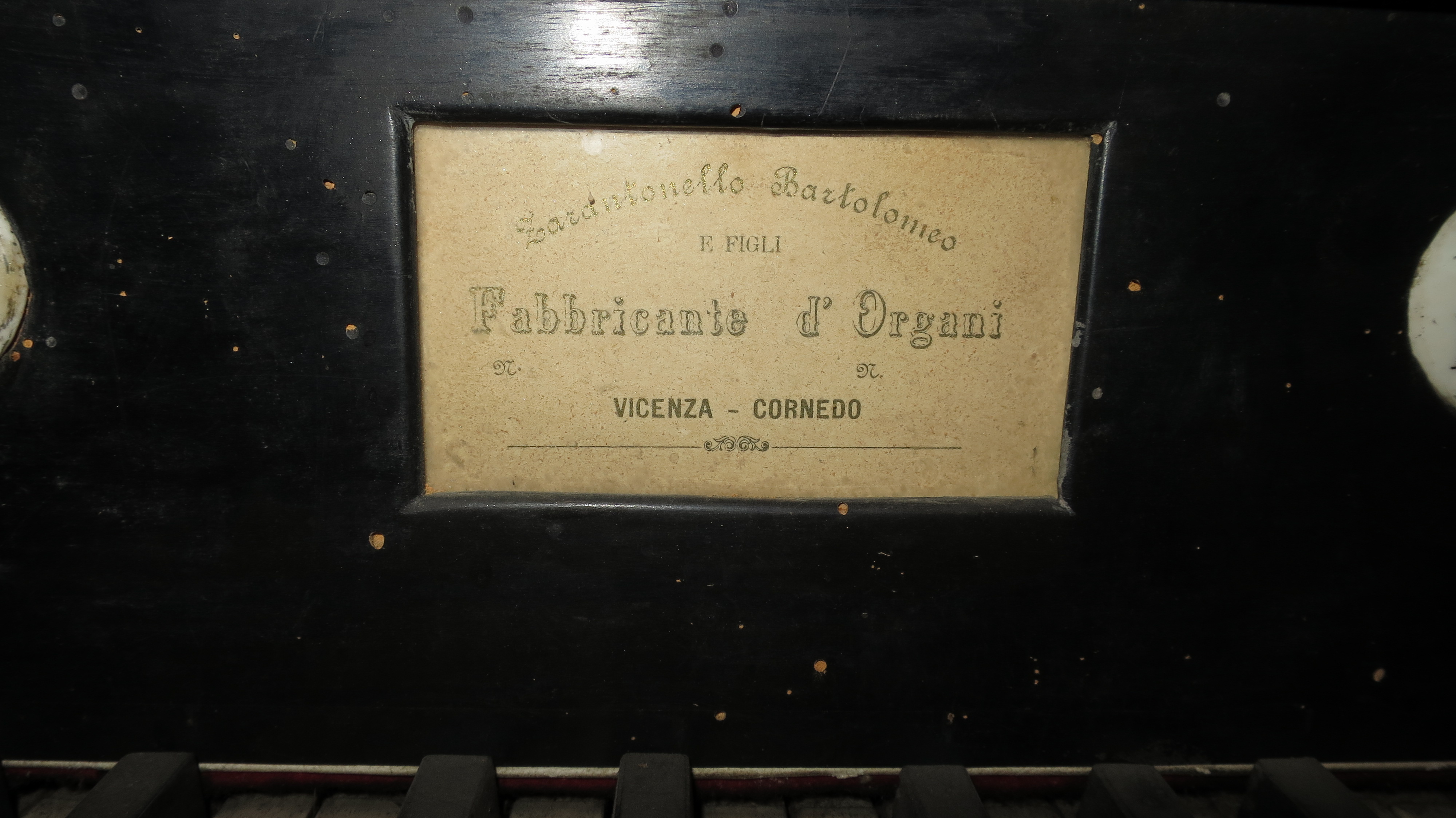 - ISCRIZIONE Zarantonello Bartolomeo E FIGLI Fabbricante d'Organi VICENZA - CORNEDO