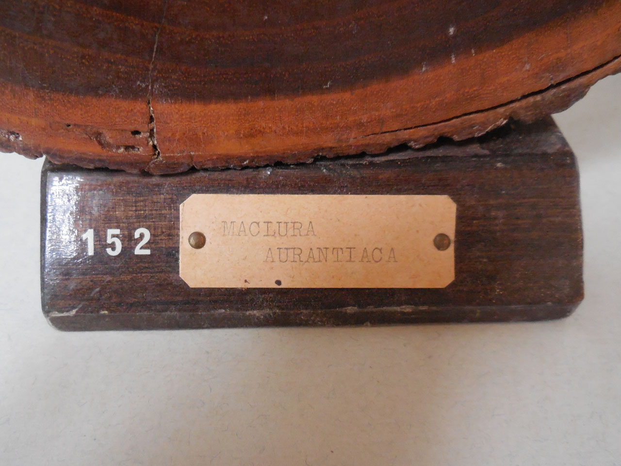 Il campione è una rondella di legno grezzo munito di corteccia, ricavata dal taglio trasversale di un tronco o di un ramo, successivamente sistemata su un supporto ligneo sul quale si trova un numero d'ordine e il cartellino che riporta il nome scientifico della specie. Sulla faccia è stata applicata della coppale mentre sul dorso è presente un'iscrizione. Il campione fa parte di una collezione nata grazie al lavoro del Prof. B. Longo e del Prof. A. Preda, direttori dell'Orto Botanico di Siena rispettivamente dal 1906-1915 e dal 1915-1921. Nella collezione vennero radunati i campioni raccolti dal Prof. A. Tassi e altri reperti legnosi provenienti dall'Orto, molti dei quali recuperati nel 1915 dalle piante strocatesi durante una nevicata. La collezione è stata incrementata fino alla fine degli anni '50 per merito del Prof. A. Nannizzi, direttore dell'Orto dal 1934 al 1950