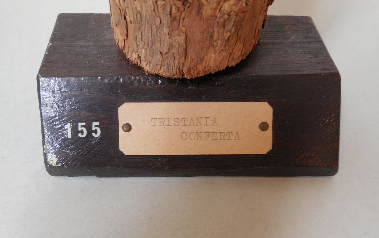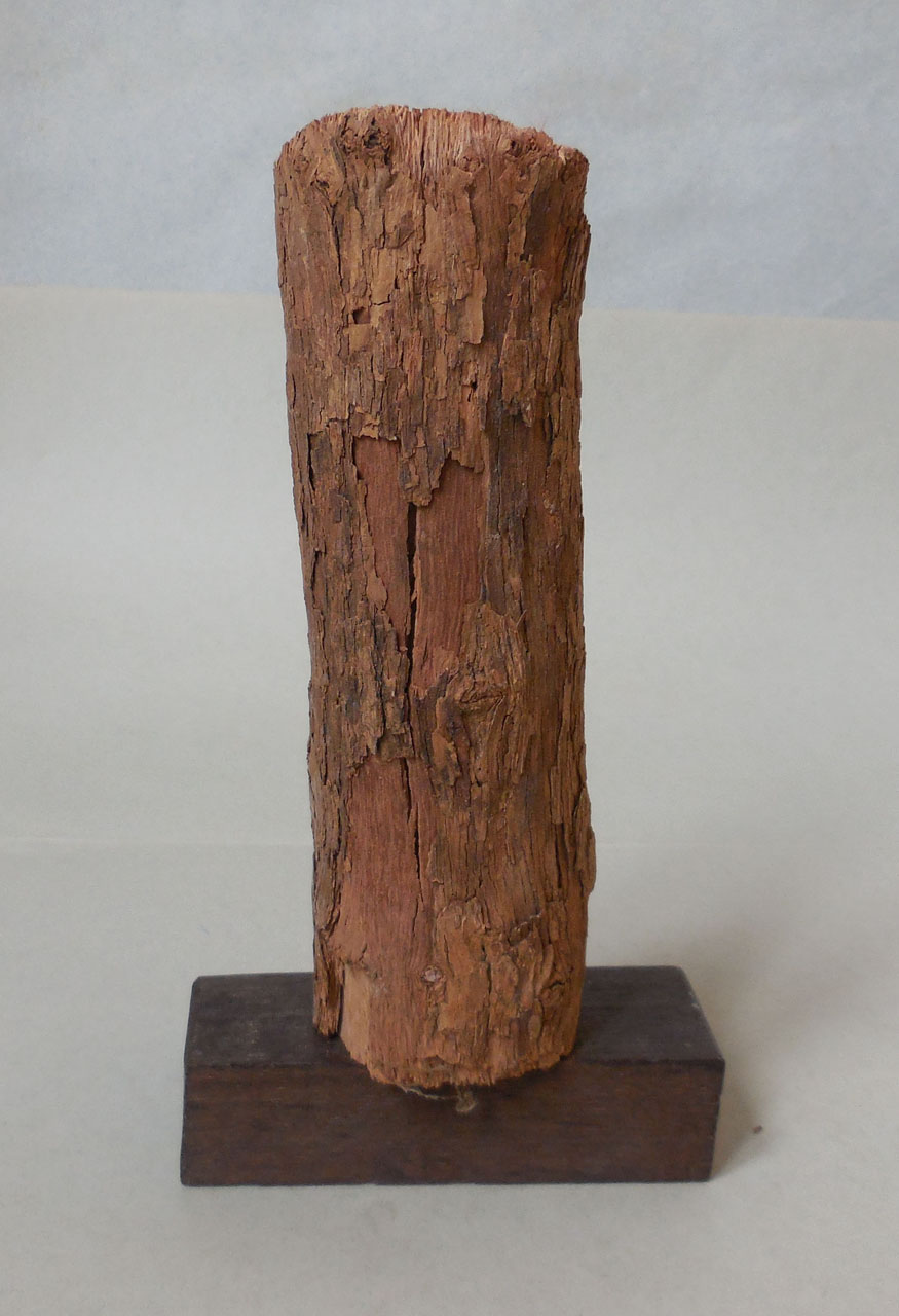 Il campione è uno spezzone di legno grezzo munito di corteccia, ricavato dal taglio di un tronco o di un ramo, successivamente sistemato su un supporto ligneo sul quale si trova un numero d'ordine e il cartellino che riporta il nome scientifico della specie. Sulla parte superiore del campione è stata eseguita una sezione radiale e su questa applicata della coppale. Il campione fa parte di una collezione nata grazie al lavoro del Prof. B. Longo e del Prof. A. Preda, direttori dell'Orto Botanico di Siena rispettivamente dal 1906-1915 e dal 1915-1921. Nella collezione vennero radunati i campioni raccolti dal Prof. A. Tassi e altri reperti legnosi provenienti dall'Orto, molti dei quali recuperati nel 1915 dalle piante strocatesi durante una nevicata. La collezione è stata incrementata fino alla fine degli anni '50 per merito del Prof. A. Nannizzi, direttore dell'Orto dal 1934 al 1950