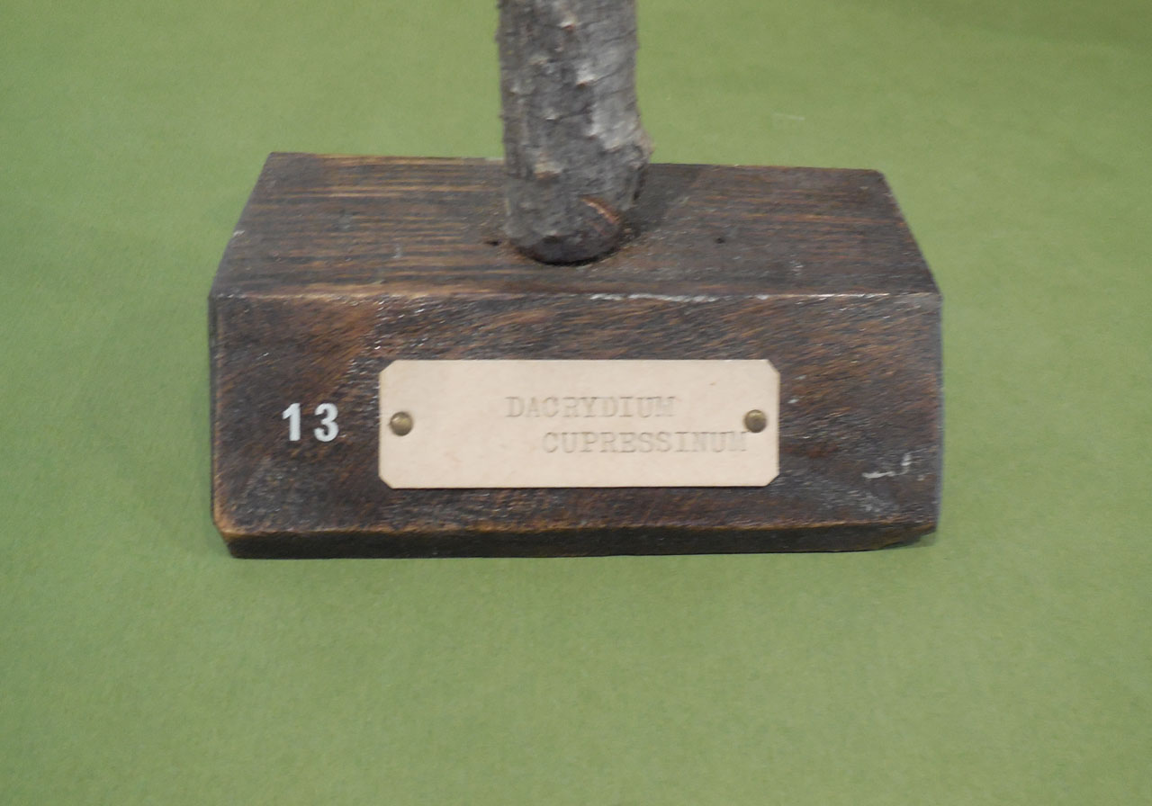 Il campione è uno spezzone di legno grezzo munito di corteccia, ricavato dal taglio di un tronco o di un ramo, successivamente sistemato su un supporto ligneo sul quale si trova un numero d'ordine e il cartellino che riporta il nome scientifico della specie. Il campione fa parte di una collezione nata grazie al lavoro del Prof. B. Longo e del Prof. A. Preda, direttori dell'Orto Botanico di Siena rispettivamente dal 1906-1915 e dal 1915-1921. Nella collezione vennero radunati i campioni raccolti dal Prof. A. Tassi e altri reperti legnosi provenienti dall'Orto, molti dei quali recuperati nel 1915 dalle piante strocatesi durante una nevicata. La collezione è stata incrementata fino alla fine degli anni '50 per merito del Prof. A. Nannizzi, direttore dell'Orto dal 1934 al 1950