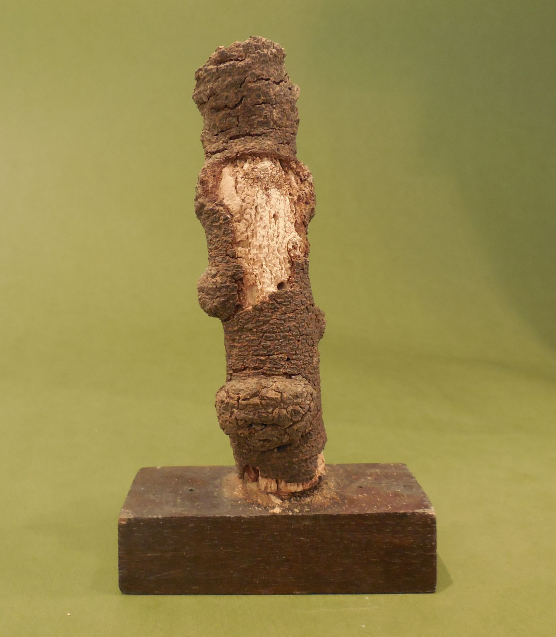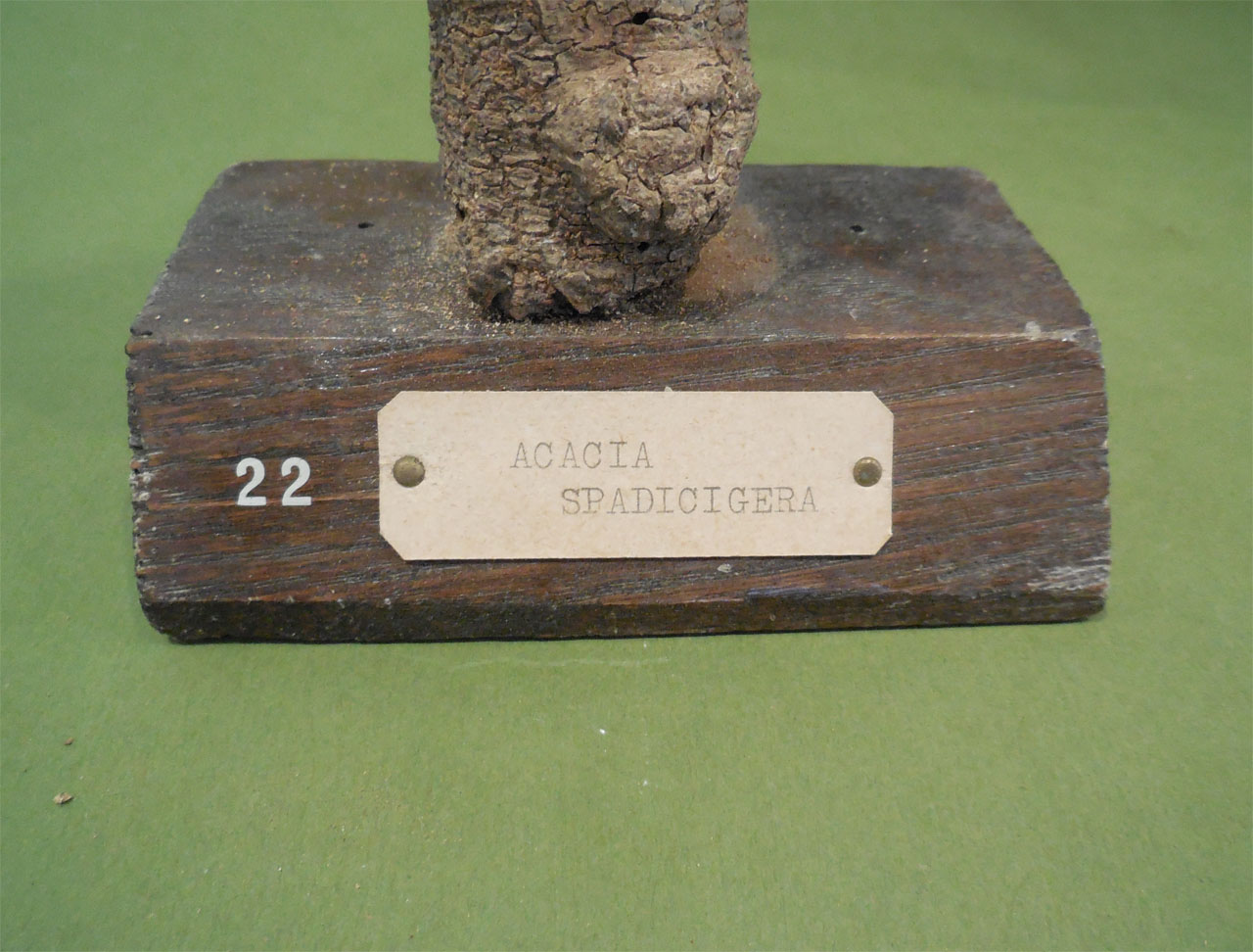 Il campione è uno spezzone di legno grezzo munito di corteccia, ricavato dal taglio di un tronco o di un ramo, successivamente sistemato su un supporto ligneo sul quale si trova un numero d'ordine e il cartellino che riporta il nome scientifico della specie. Il campione fa parte di una collezione nata grazie al lavoro del Prof. B. Longo e del Prof. A. Preda, direttori dell'Orto Botanico di Siena rispettivamente dal 1906-1915 e dal 1915-1921. Nella collezione vennero radunati i campioni raccolti dal Prof. A. Tassi e altri reperti legnosi provenienti dall'Orto, molti dei quali recuperati nel 1915 dalle piante strocatesi durante una nevicata. La collezione è stata incrementata fino alla fine degli anni '50 per merito del Prof. A. Nannizzi, direttore dell'Orto dal 1934 al 1950