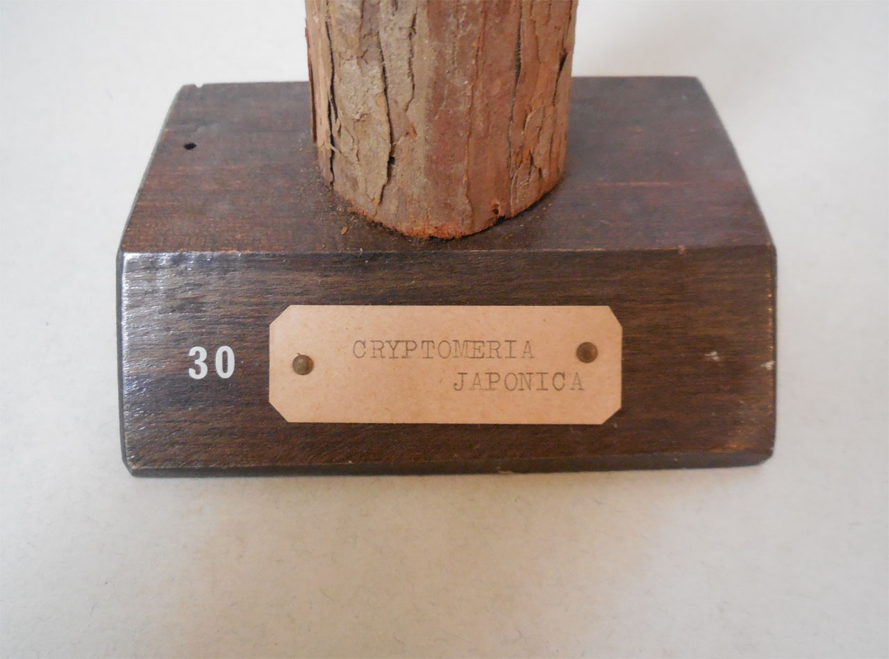 l campione è uno spezzone di legno grezzo munito di corteccia, ricavato dal taglio di un tronco o di un ramo, successivamente sistemato su un supporto ligneo sul quale si trova un numero d'ordine e il cartellino che riporta il nome scientifico della specie. Il campione fa parte di una collezione nata grazie al lavoro del Prof. B. Longo e del Prof. A. Preda, direttori dell'Orto Botanico di Siena rispettivamente dal 1906-1915 e dal 1915-1921. Nella collezione vennero radunati i campioni raccolti dal Prof. A. Tassi e altri reperti legnosi provenienti dall'Orto, molti dei quali recuperati nel 1915 dalle piante strocatesi durante una nevicata. La collezione è stata incrementata fino alla fine degli anni '50 per merito del Prof. A. Nannizzi, direttore dell'Orto dal 1934 al 1950