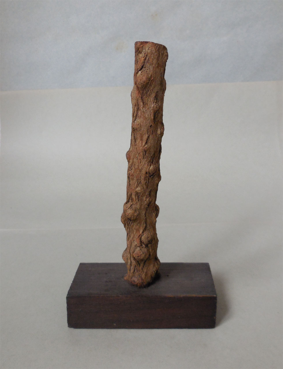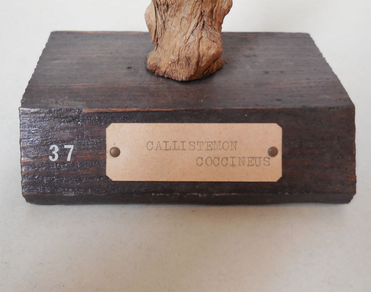 Il campione è uno spezzone di legno grezzo munito di corteccia, ricavato dal taglio di un tronco o di un ramo, successivamente sistemato su un supporto ligneo sul quale si trova un numero d'ordine e il cartellino che riporta il nome scientifico della specie. Il campione fa parte di una collezione nata grazie al lavoro del Prof. B. Longo e del Prof. A. Preda, direttori dell'Orto Botanico di Siena rispettivamente dal 1906-1915 e dal 1915-1921. Nella collezione vennero radunati i campioni raccolti dal Prof. A. Tassi e altri reperti legnosi provenienti dall'Orto, molti dei quali recuperati nel 1915 dalle piante strocatesi durante una nevicata. La collezione è stata incrementata fino alla fine degli anni '50 per merito del Prof. A. Nannizzi, direttore dell'Orto dal 1934 al 1950
