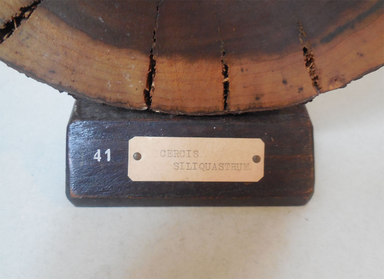 Il campione è una rondella di legno grezzo munito di corteccia, ricavata dal taglio trasversale di un tronco o di un ramo, successivamente sistemata su un supporto ligneo sul quale si trova un numero d'ordine e il cartellino che riporta il nome scientifico della specie. Sulla faccia è stata applicata della coppale. Il campione fa parte di una collezione nata grazie al lavoro del Prof. B. Longo e del Prof. A. Preda, direttori dell'Orto Botanico di Siena rispettivamente dal 1906-1915 e dal 1915-1921. Nella collezione vennero radunati i campioni raccolti dal Prof. A. Tassi e altri reperti legnosi provenienti dall'Orto, molti dei quali recuperati nel 1915 dalle piante strocatesi durante una nevicata. La collezione è stata incrementata fino alla fine degli anni '50 per merito del Prof. A. Nannizzi, direttore dell'Orto dal 1934 al 1950