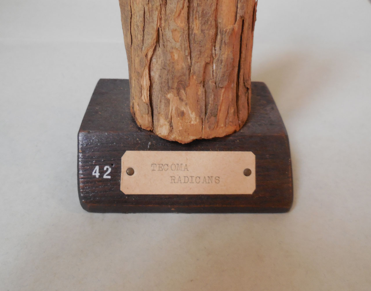 Il campione è uno spezzone di legno grezzo munito di corteccia, ricavato dal taglio di un tronco o di un ramo, successivamente sistemato su un supporto ligneo sul quale si trova un numero d'ordine e il cartellino che riporta il nome scientifico della specie. Sulla zona di taglio superiore è stata applicata della coppale. Il campione fa parte di una collezione nata grazie al lavoro del Prof. B. Longo e del Prof. A. Preda, direttori dell'Orto Botanico di Siena rispettivamente dal 1906-1915 e dal 1915-1921. Nella collezione vennero radunati i campioni raccolti dal Prof. A. Tassi e altri reperti legnosi provenienti dall'Orto, molti dei quali recuperati nel 1915 dalle piante strocatesi durante una nevicata. La collezione è stata incrementata fino alla fine degli anni '50 per merito del Prof. A. Nannizzi, direttore dell'Orto dal 1934 al 1950