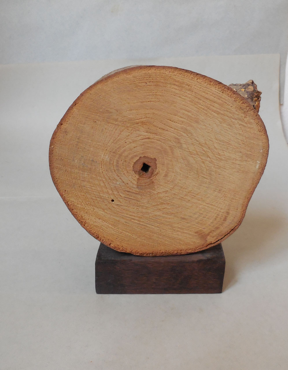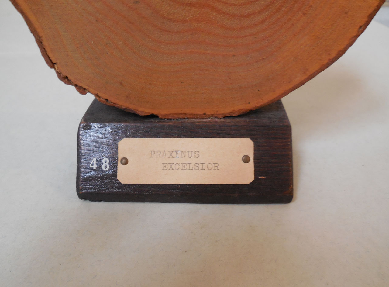 Il campione è una rondella di legno grezzo munito di corteccia, ricavata dal taglio trasversale di un tronco o di un ramo, successivamente sistemata su un supporto ligneo sul quale si trova un numero d'ordine e il cartellino che riporta il nome scientifico della specie. Sulla faccia è stata applicata della coppale mentre al centro è presente un foro. Il campione fa parte di una collezione nata grazie al lavoro del Prof. B. Longo e del Prof. A. Preda, direttori dell'Orto Botanico di Siena rispettivamente dal 1906-1915 e dal 1915-1921. Nella collezione vennero radunati i campioni raccolti dal Prof. A. Tassi e altri reperti legnosi provenienti dall'Orto, molti dei quali recuperati nel 1915 dalle piante strocatesi durante una nevicata. La collezione è stata incrementata fino alla fine degli anni '50 per merito del Prof. A. Nannizzi, direttore dell'Orto dal 1934 al 1950