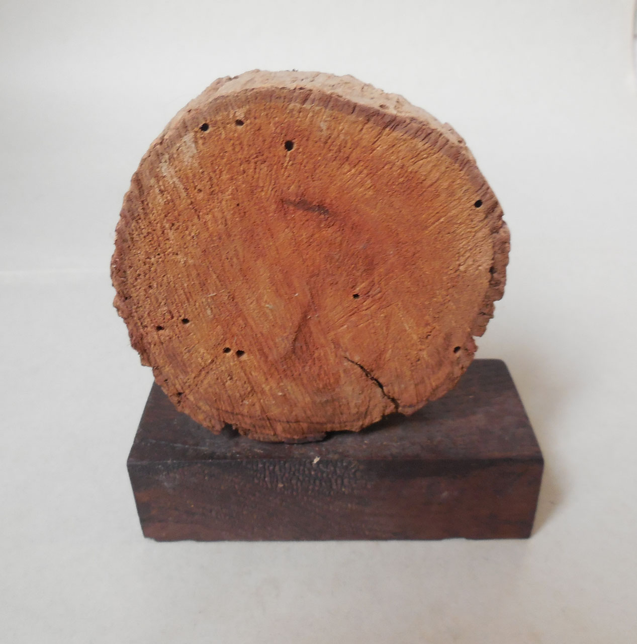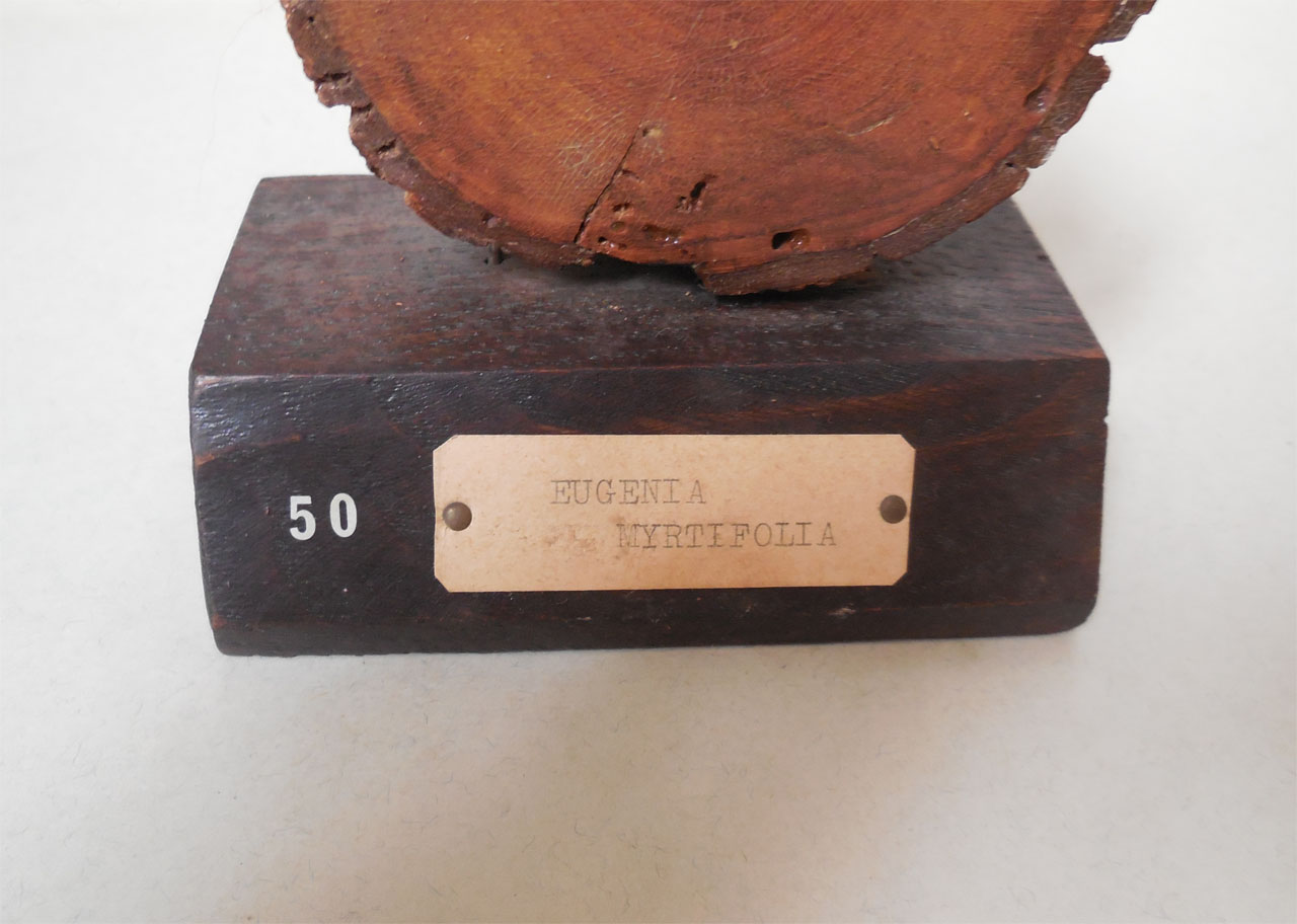 Il campione è una rondella di legno grezzo munito di corteccia, ricavata dal taglio trasversale di un tronco o di un ramo, successivamente sistemata su un supporto ligneo sul quale si trova un numero d'ordine e il cartellino che riporta il nome scientifico della specie. Sulla faccia è stata applicata della coppale. Il campione fa parte di una collezione nata grazie al lavoro del Prof. B. Longo e del Prof. A. Preda, direttori dell'Orto Botanico di Siena rispettivamente dal 1906-1915 e dal 1915-1921. Nella collezione vennero radunati i campioni raccolti dal Prof. A. Tassi e altri reperti legnosi provenienti dall'Orto, molti dei quali recuperati nel 1915 dalle piante strocatesi durante una nevicata. La collezione è stata incrementata fino alla fine degli anni '50 per merito del Prof. A. Nannizzi, direttore dell'Orto dal 1934 al 1950