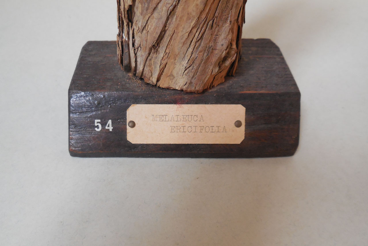 Il campione è uno spezzone di legno grezzo munito di corteccia, ricavato dal taglio di un tronco o di un ramo, successivamente sistemato su un supporto ligneo sul quale si trova un numero d'ordine e il cartellino che riporta il nome scientifico della specie. Sulla zona di taglio superiore è stata applicata della coppale. Il campione fa parte di una collezione nata grazie al lavoro del Prof. B. Longo e del Prof. A. Preda, direttori dell'Orto Botanico di Siena rispettivamente dal 1906-1915 e dal 1915-1921. Nella collezione vennero radunati i campioni raccolti dal Prof. A. Tassi e altri reperti legnosi provenienti dall'Orto, molti dei quali recuperati nel 1915 dalle piante strocatesi durante una nevicata. La collezione è stata incrementata fino alla fine degli anni '50 per merito del Prof. A. Nannizzi, direttore dell'Orto dal 1934 al 1950