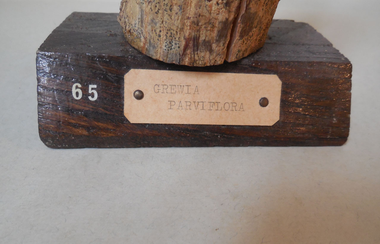 Il campione è uno spezzone di legno grezzo munito di corteccia, ricavato dal taglio di un tronco o di un ramo, successivamente sistemato su un supporto ligneo sul quale si trova un numero d'ordine e il cartellino che riporta il nome scientifico della specie. Sulla parte superiore del campione è stata eseguita una sezione radiale e su questa applicata della coppale. Il campione fa parte di una collezione nata grazie al lavoro del Prof. B. Longo e del Prof. A. Preda, direttori dell'Orto Botanico di Siena rispettivamente dal 1906-1915 e dal 1915-1921. Nella collezione vennero radunati i campioni raccolti dal Prof. A. Tassi e altri reperti legnosi provenienti dall'Orto, molti dei quali recuperati nel 1915 dalle piante strocatesi durante una nevicata. La collezione è stata incrementata fino alla fine degli anni '50 per merito del Prof. A. Nannizzi, direttore dell'Orto dal 1934 al 1950