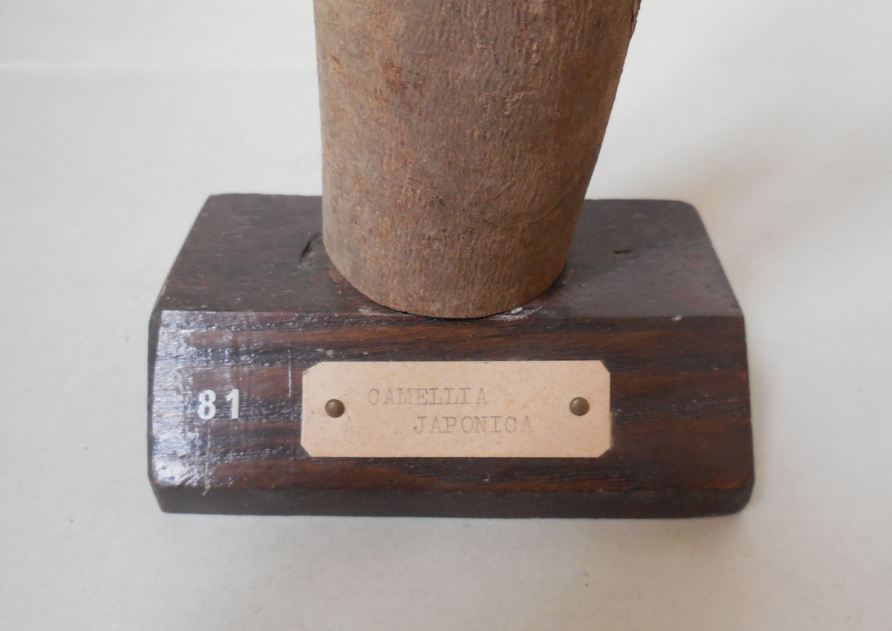 Il campione è uno spezzone di legno grezzo munito di corteccia, ricavato dal taglio di un tronco o di un ramo, successivamente sistemato su un supporto ligneo sul quale si trova un numero d'ordine e il cartellino che riporta il nome scientifico della specie. Sulla zona di taglio superiore è stata applicata della coppale. Il campione fa parte di una collezione nata grazie al lavoro del Prof. B. Longo e del Prof. A. Preda, direttori dell'Orto Botanico di Siena rispettivamente dal 1906-1915 e dal 1915-1921. Nella collezione vennero radunati i campioni raccolti dal Prof. A. Tassi e altri reperti legnosi provenienti dall'Orto, molti dei quali recuperati nel 1915 dalle piante strocatesi durante una nevicata. La collezione è stata incrementata fino alla fine degli anni '50 per merito del Prof. A. Nannizzi, direttore dell'Orto dal 1934 al 1950