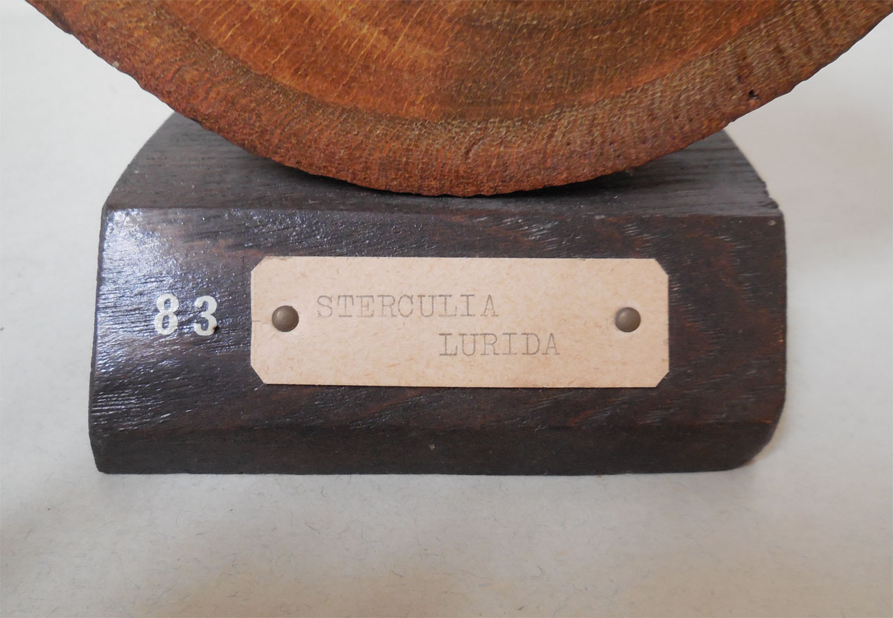 Il campione è una rondella di legno grezzo munito di corteccia, ricavata dal taglio trasversale di un tronco o di un ramo, successivamente sistemata su un supporto ligneo sul quale si trova un numero d'ordine e il cartellino che riporta il nome scientifico della specie. Sulla faccia è stata applicata della coppale. Il campione fa parte di una collezione nata grazie al lavoro del Prof. B. Longo e del Prof. A. Preda, direttori dell'Orto Botanico di Siena rispettivamente dal 1906-1915 e dal 1915-1921. Nella collezione vennero radunati i campioni raccolti dal Prof. A. Tassi e altri reperti legnosi provenienti dall'Orto, molti dei quali recuperati nel 1915 dalle piante strocatesi durante una nevicata. La collezione è stata incrementata fino alla fine degli anni '50 per merito del Prof. A. Nannizzi, direttore dell'Orto dal 1934 al 1950