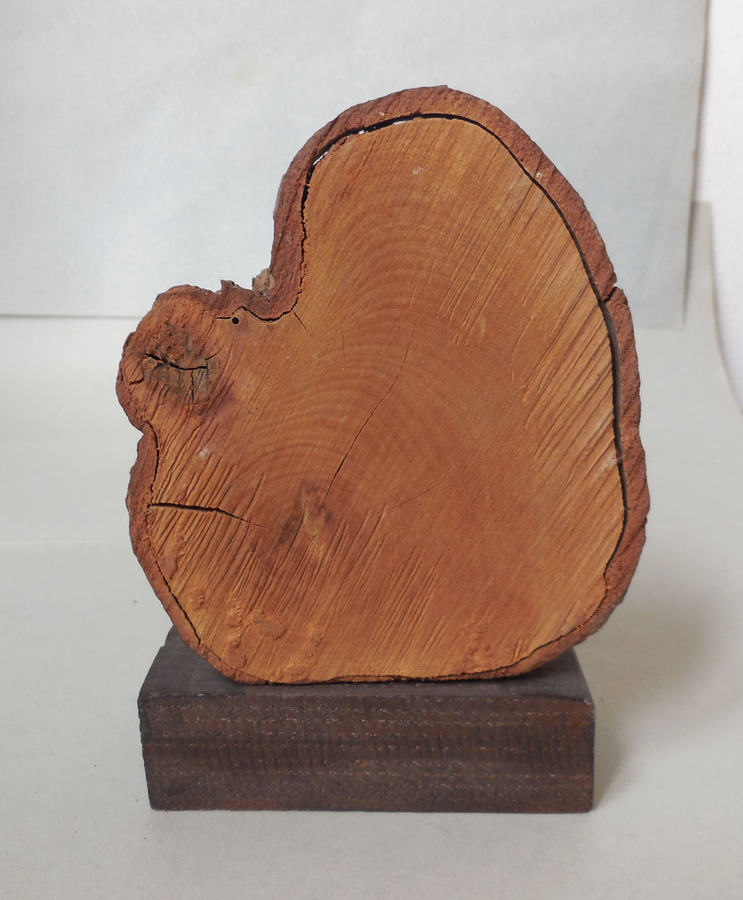 Il campione è una rondella di legno grezzo munito di corteccia, ricavata dal taglio trasversale di un tronco o di un ramo, successivamente sistemata su un supporto ligneo sul quale si trova un numero d'ordine e il cartellino che riporta il nome scientifico della specie. Sulla faccia è stata applicata della coppale. Il campione fa parte di una collezione nata grazie al lavoro del Prof. B. Longo e del Prof. A. Preda, direttori dell'Orto Botanico di Siena rispettivamente dal 1906-1915 e dal 1915-1921. Nella collezione vennero radunati i campioni raccolti dal Prof. A. Tassi e altri reperti legnosi provenienti dall'Orto, molti dei quali recuperati nel 1915 dalle piante strocatesi durante una nevicata. La collezione è stata incrementata fino alla fine degli anni '50 per merito del Prof. A. Nannizzi, direttore dell'Orto dal 1934 al 1950