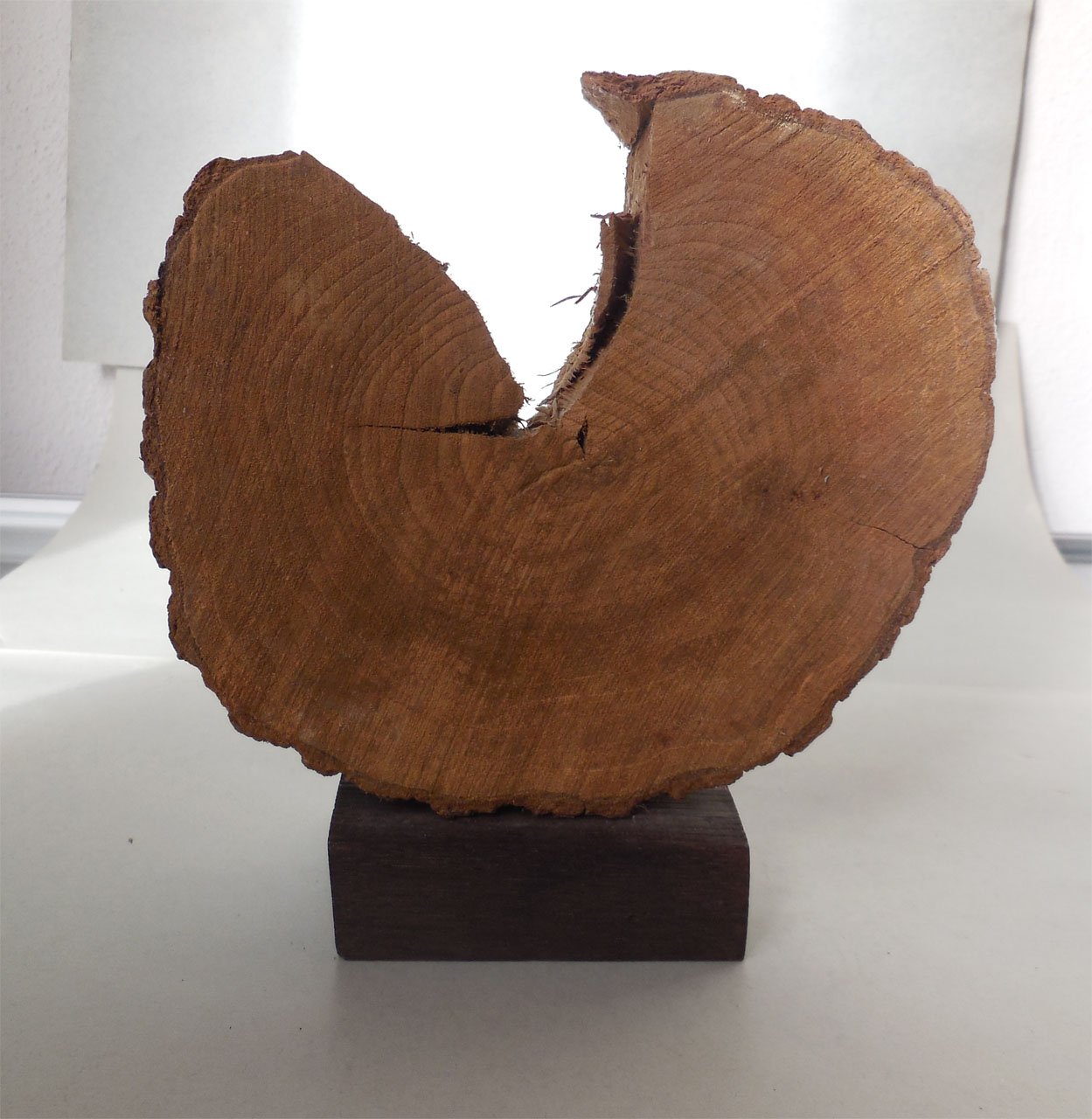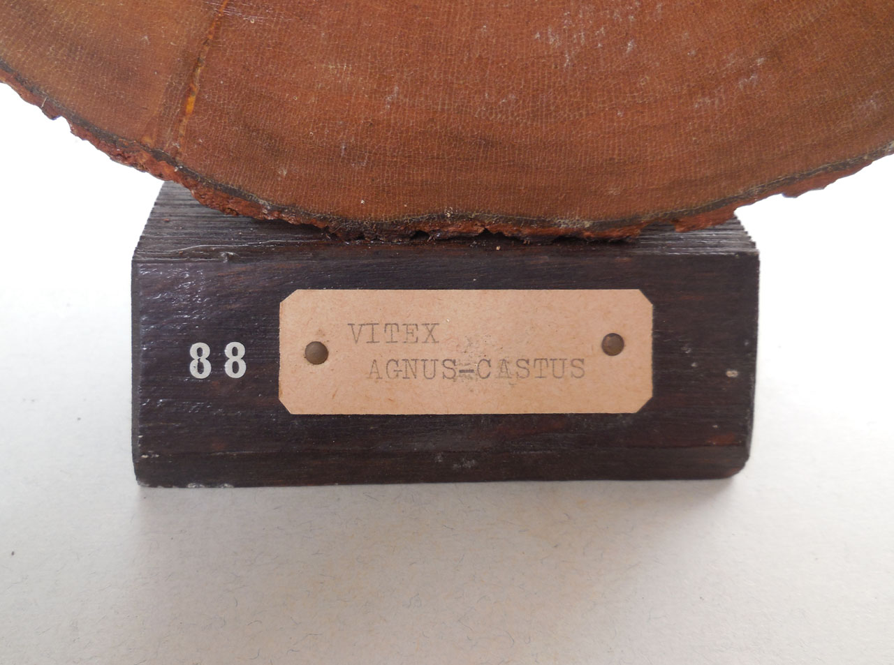 Il campione è una rondella di legno grezzo munito di corteccia, ricavata dal taglio trasversale di un tronco o di un ramo, successivamente sistemata su un supporto ligneo sul quale si trova un numero d'ordine e il cartellino che riporta il nome scientifico della specie. Sulla faccia è stata applicata della coppale. Il campione fa parte di una collezione nata grazie al lavoro del Prof. B. Longo e del Prof. A. Preda, direttori dell'Orto Botanico di Siena rispettivamente dal 1906-1915 e dal 1915-1921. Nella collezione vennero radunati i campioni raccolti dal Prof. A. Tassi e altri reperti legnosi provenienti dall'Orto, molti dei quali recuperati nel 1915 dalle piante strocatesi durante una nevicata. La collezione è stata incrementata fino alla fine degli anni '50 per merito del Prof. A. Nannizzi, direttore dell'Orto dal 1934 al 1950