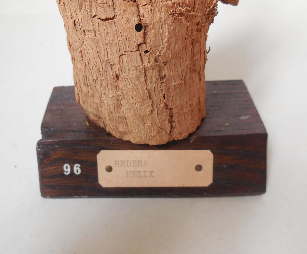 Il campione è uno spezzone di legno grezzo munito di corteccia, ricavato dal taglio di un tronco o di un ramo, successivamente sistemato su un supporto ligneo sul quale si trova un numero d'ordine e il cartellino che riporta il nome scientifico della specie. Sulla parte superiore del campione è stata eseguita una sezione radiale e in alcuni punti è stata applicata della coppale. Il campione fa parte di una collezione nata grazie al lavoro del Prof. B. Longo e del Prof. A. Preda, direttori dell'Orto Botanico di Siena rispettivamente dal 1906-1915 e dal 1915-1921. Nella collezione vennero radunati i campioni raccolti dal Prof. A. Tassi e altri reperti legnosi provenienti dall'Orto, molti dei quali recuperati nel 1915 dalle piante strocatesi durante una nevicata. La collezione è stata incrementata fino alla fine degli anni '50 per merito del Prof. A. Nannizzi, direttore dell'Orto dal 1934 al 1950