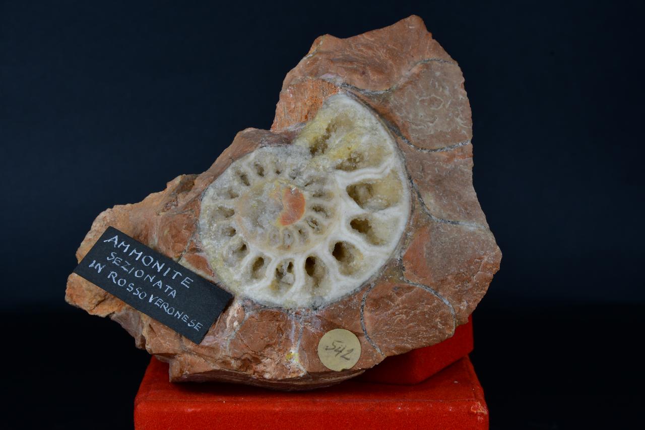 fossile (Ammonite sezionata in rosso veronese, esemplare)
