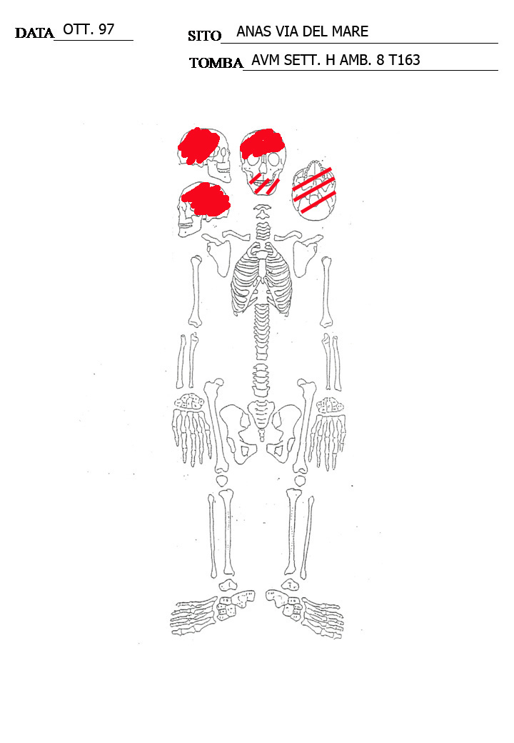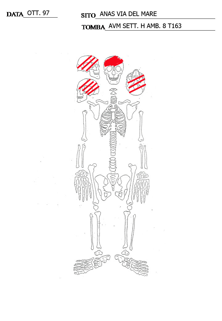 AVM Sett. H Amb.8 T163 resti scheletrici pertinenti almeno due individui adulti. Medio stato di conservazione e di rappresentatività