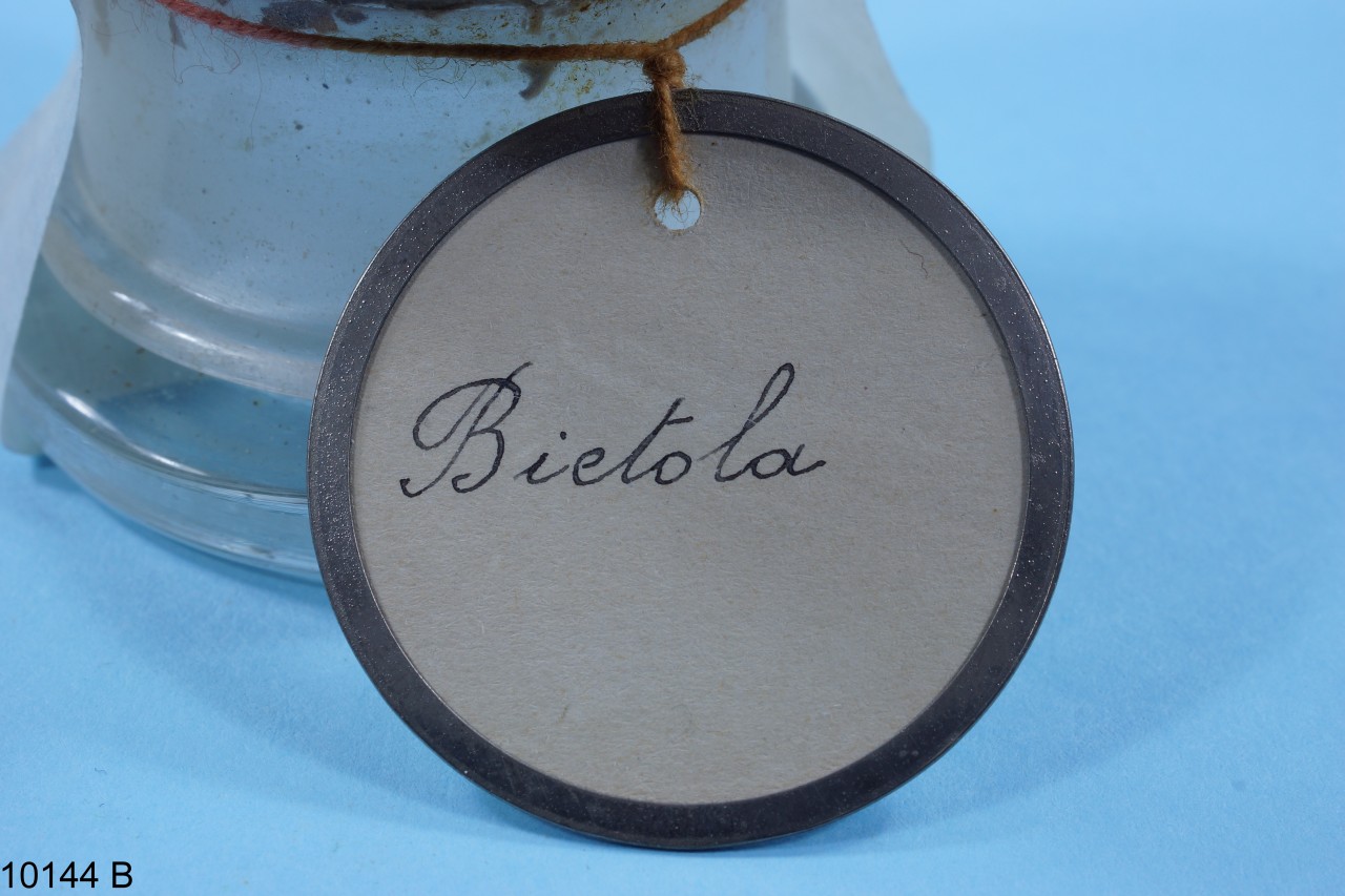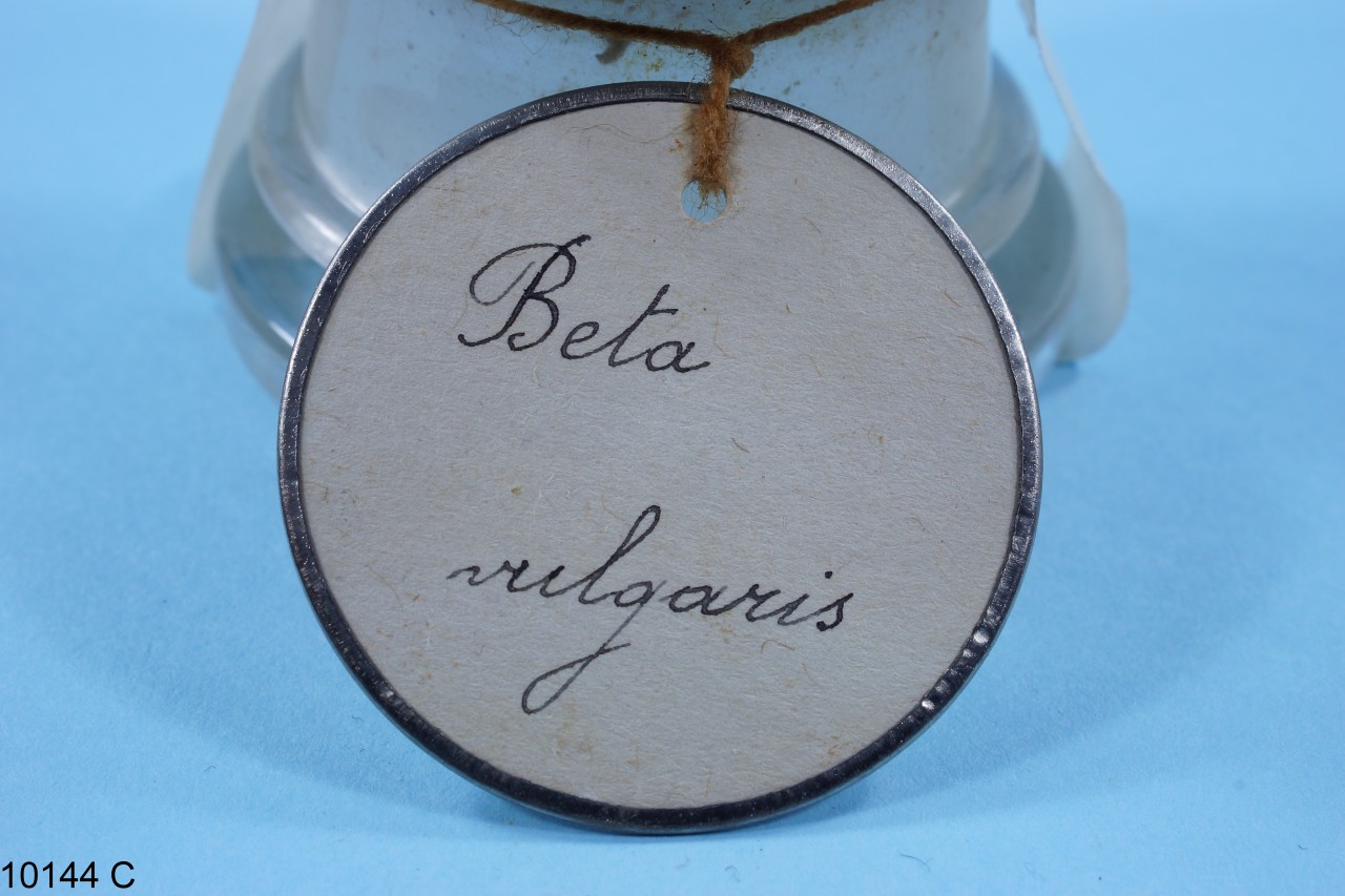 - NOTIZIE STORICO CRITICHE Barattolo in vetro contenente semi di Beta vulgaris L. La specie è stata pubblicata da: Carl Linnaeus, in: Species Plantarum, I: 222. 1753. Il nome comune della specie è bietola. Il barattolo, insieme ad altri beni botanici, costituiva il Gabinetto di Fisica e di Storia Naturale del Seminario Regionale "Pianum" Abruzzo e Molise