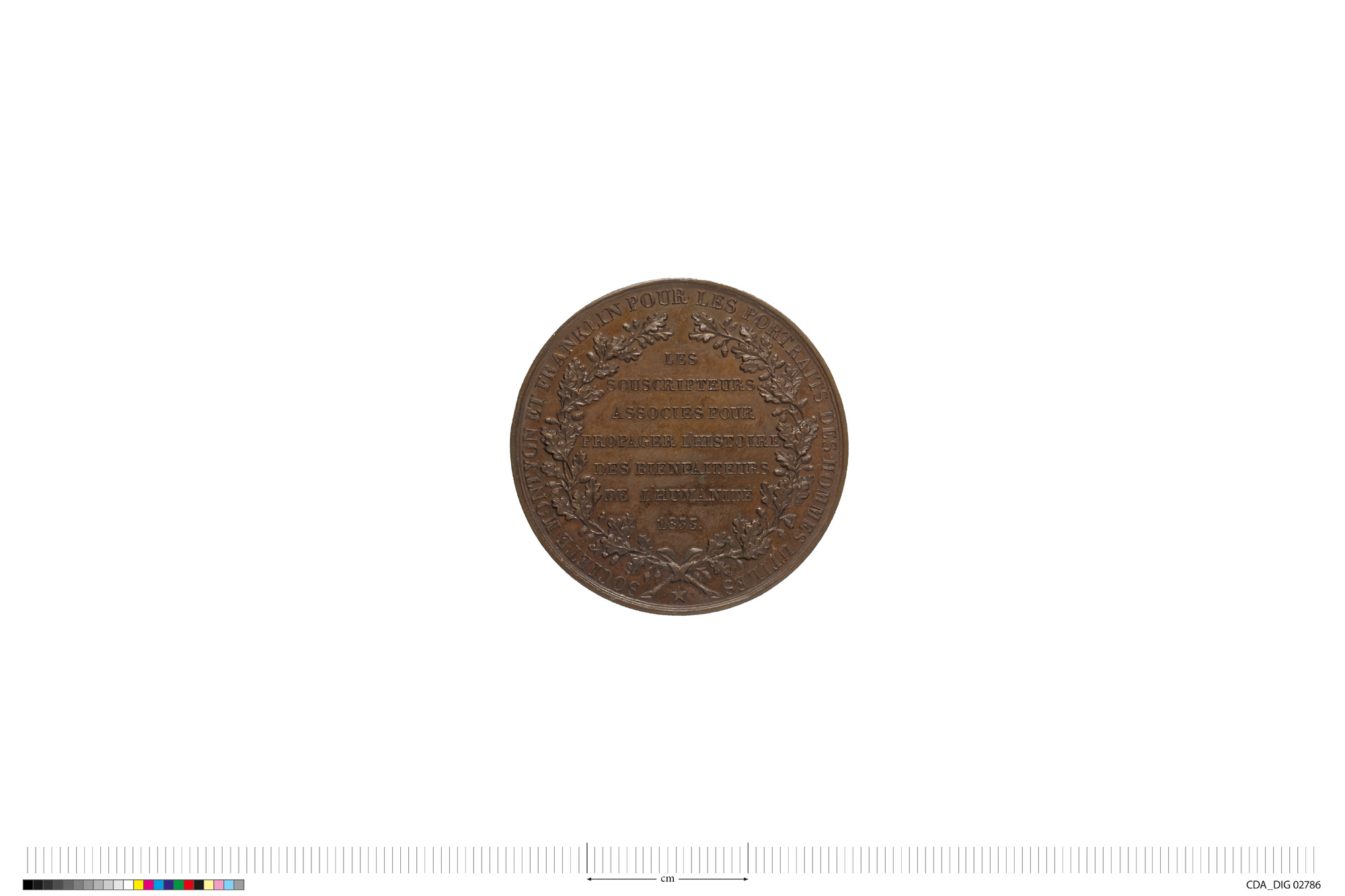 Dritto: Busti accostati a s. di Franklin e Montyon. In basso: BARRE. Rovescio: Legenda circolare in 7 righe entro una corona di quercia